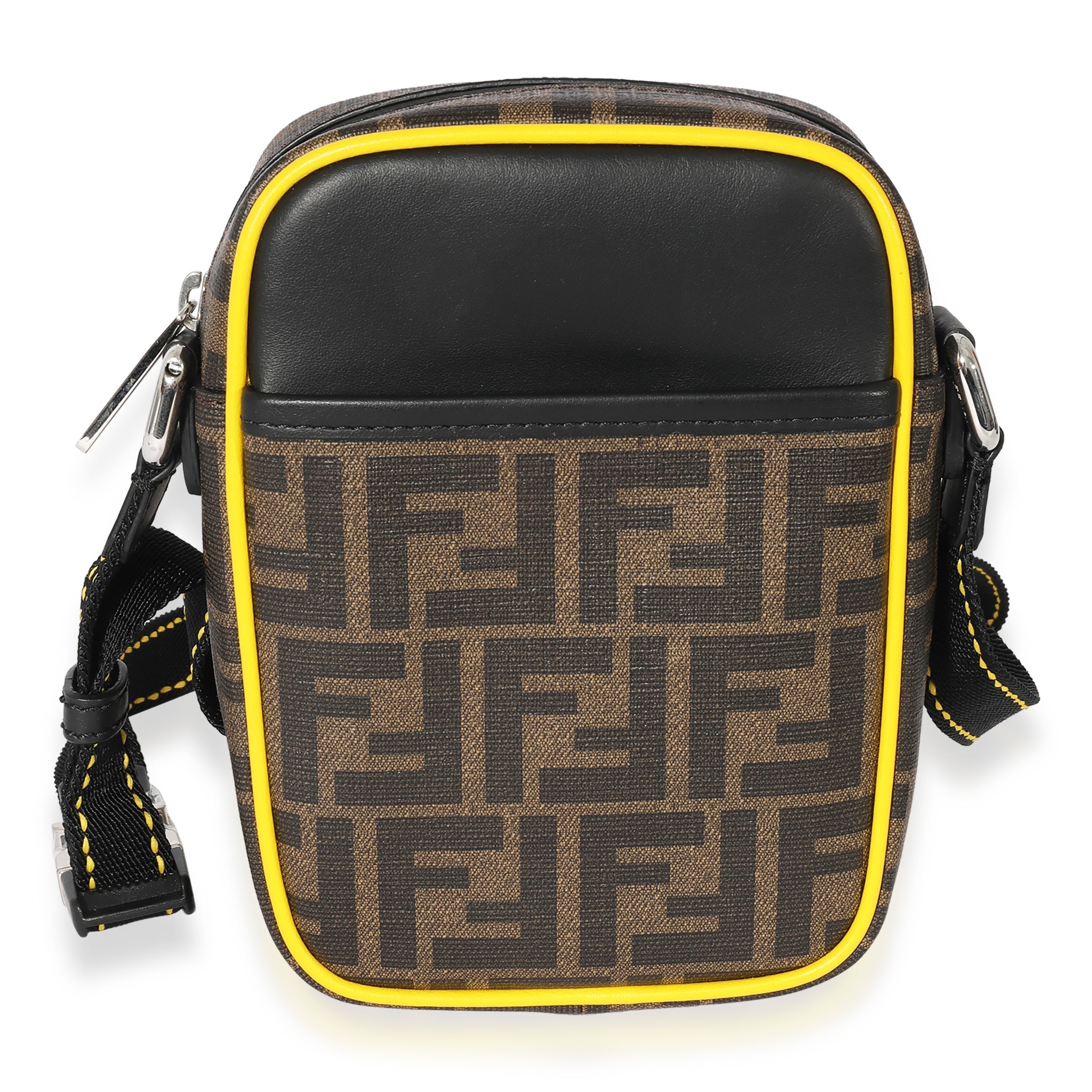 Fendi Brown Zucca & Black Leather Messenger Bag