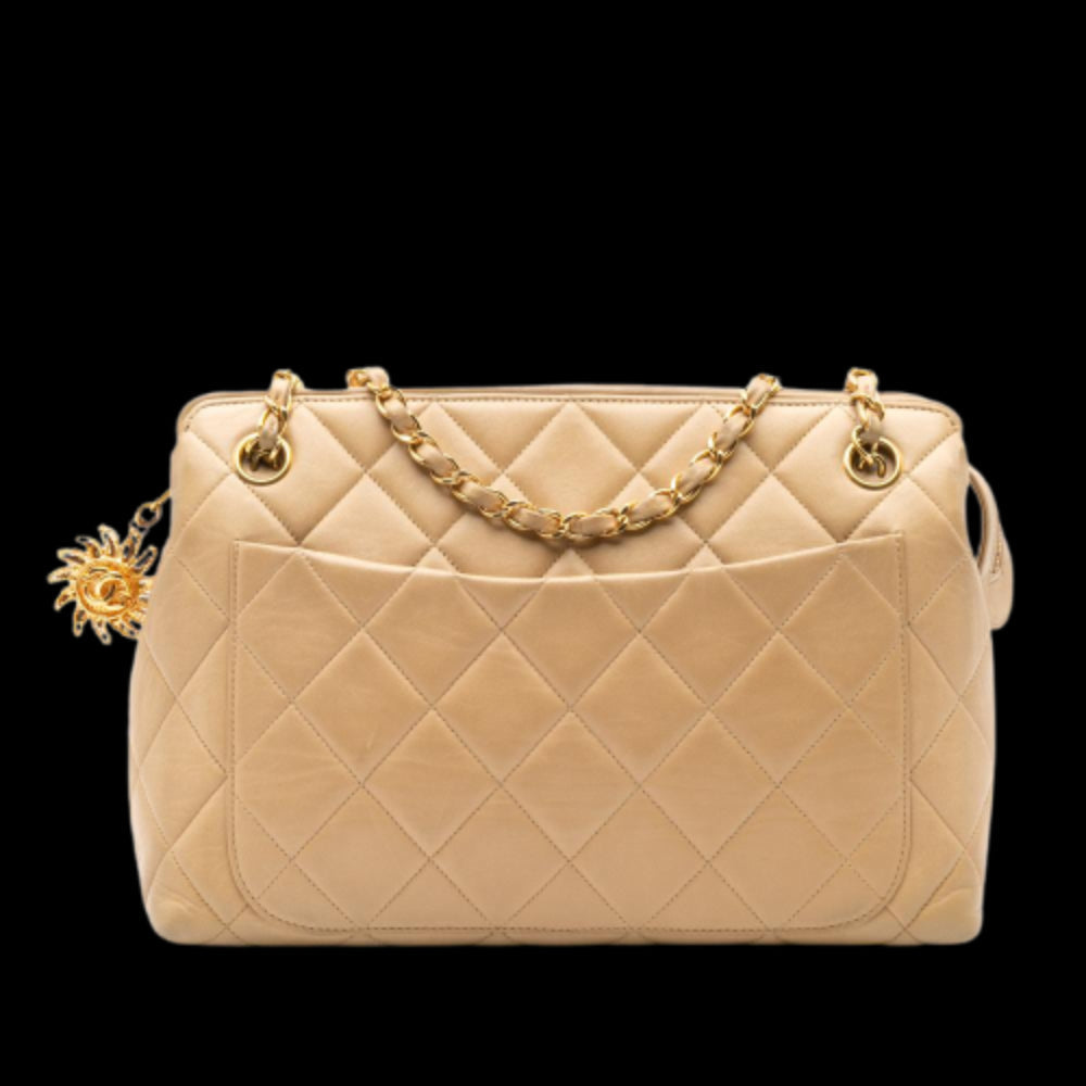 This crossbody bag features a quilted lambskin body, leather-woven chain straps, a top zip closure, exterior slip pockets, and interior zip and slip pockets. It carries a B+ condition rating.Exterior Back Worn. Exterior Bottom Worn. Exterior Corners Worn. Embellishment Scratched. Exterior Front Worn. Exterior Handle Worn. Interior Pocket Worn. Interior Lining Worn. Exterior Pocket Worn. Practical Attachment Scratched. Exterior Side Worn. Exterior Top Worn. Zipper Scratched. Dimensions:Length 28cmWidth 11cmHeight 19.5cmShoulder Drop 48cmOriginal Accessories: This item has no other original accessories.Serial Number: 3009436Color: Brown x BeigeMaterial: Leather x Lambskin Leather