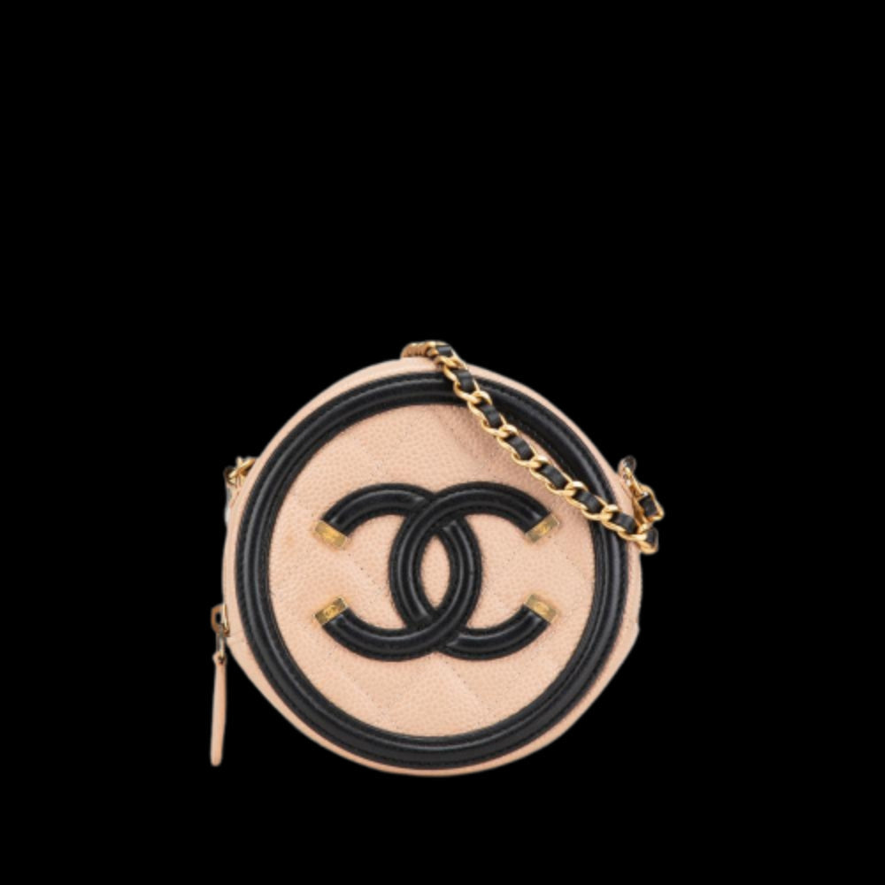 The CC Filigree features a quilted caviar leather body, a leather woven chain link strap, a top zip closure, and interior slip pockets. It carries a B+ condition rating.Exterior Back stained with Other. Exterior Bottom stained with Other. Embellishment Scratched. Exterior Front stained with Other. Interior Pocket stained with Other. Interior Lining stained with Other. Exterior Side Worn. Exterior Top stained with Other. Zipper Scratched. Dimensions:Length 12cmWidth 5.5cmHeight 12cmShoulder Drop 60cmOriginal Accessories: Serial Number: 27795843Color: Brown x BeigeBlackMaterial: Leather x Caviar Leather