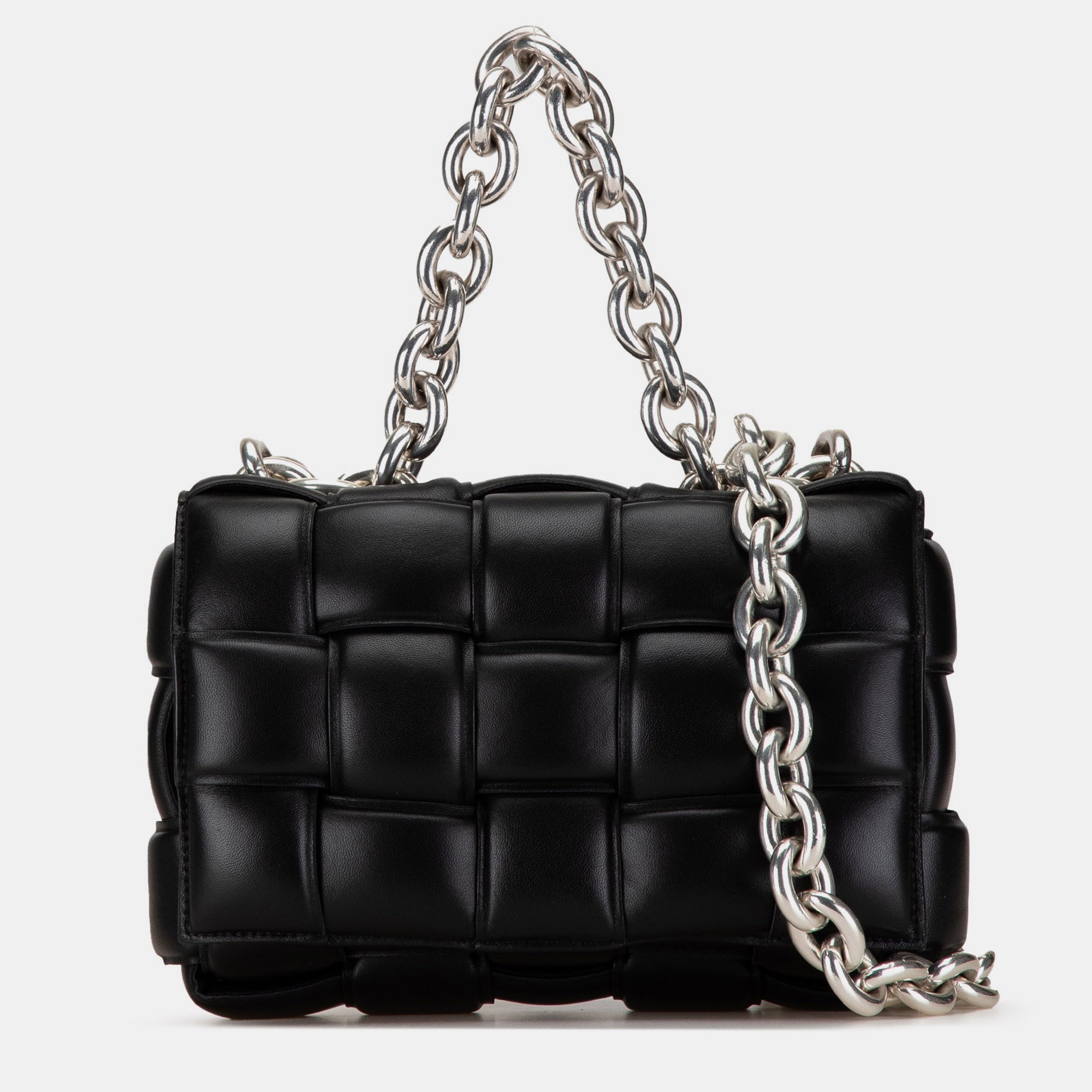 Discover the Bottega Veneta Black Lambskin Leather Intrecciato Padded Chain Cassette Satchel Bag, a stunning addition to your collection of designer luxury handbags. Crafted from premium lambskin leather, this bag features a unique intrecciato design and a stylish padded chain for added convenience. Ideal for any occasion, it combines elegance with practicality. When you buy luxury handbags online, ensure you compare prices to find the best deals. Our platform offers trusted information on this iconic brand, known for its exceptional quality and craftsmanship. Shop confidently with us and elevate your style with this exquisite Bottega Veneta bag.