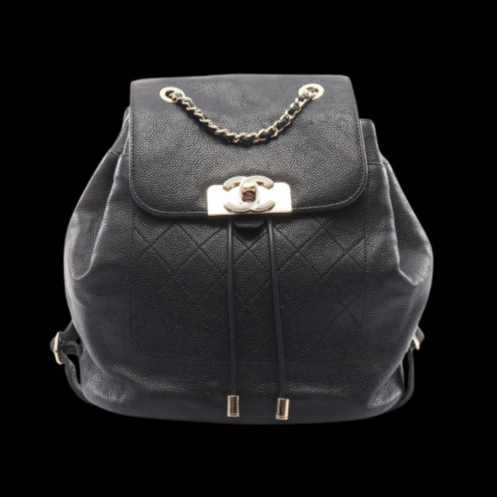 Black Leather Chanel Backpack