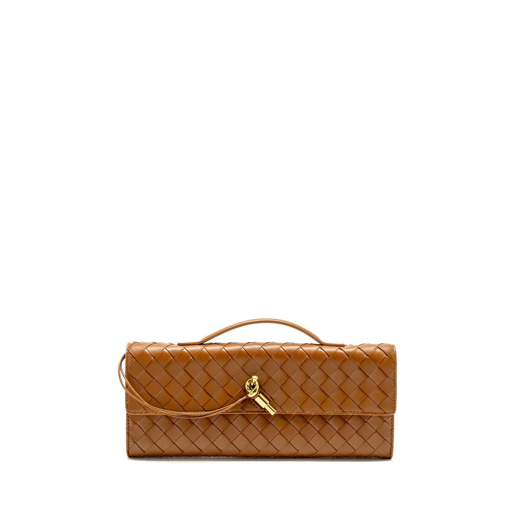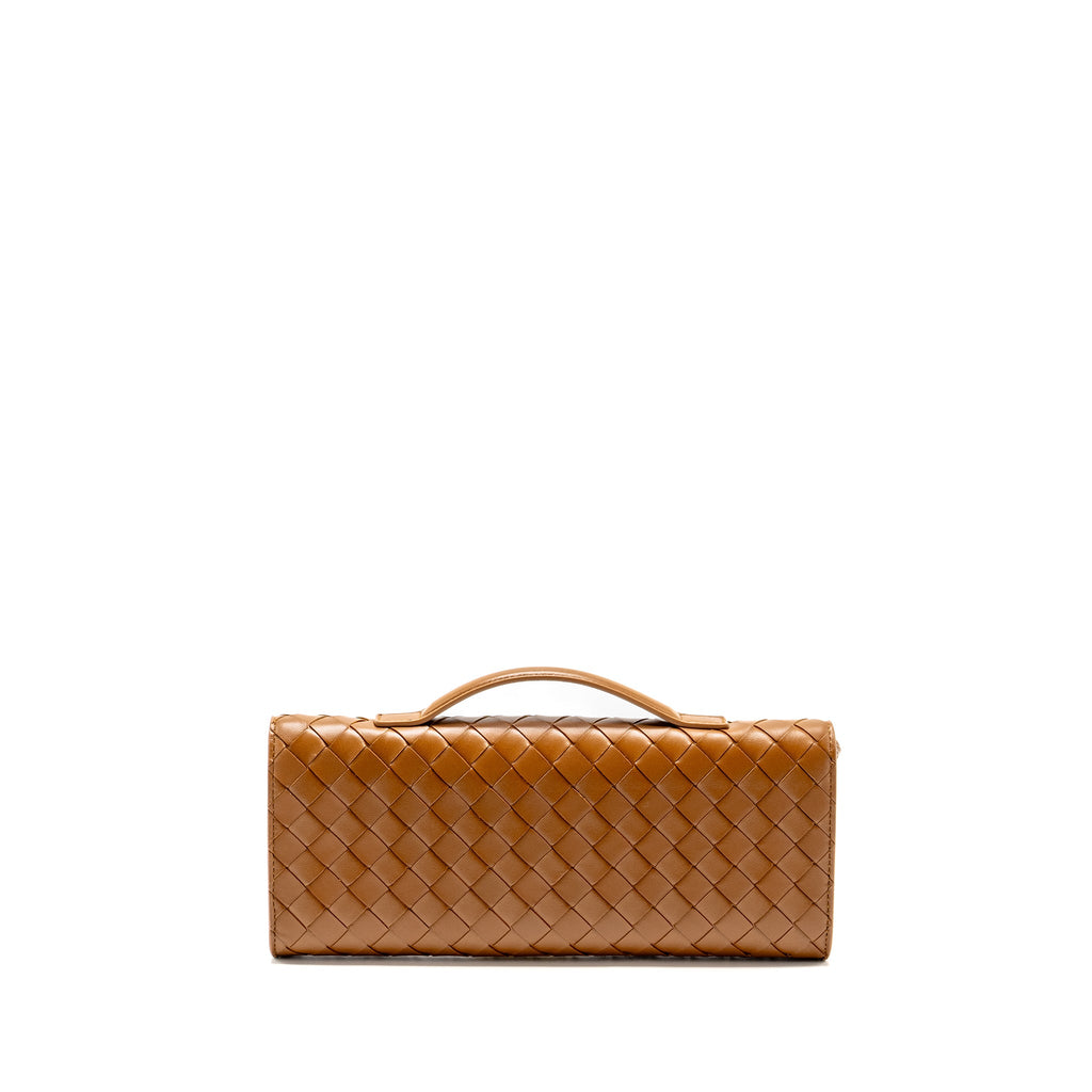 Bottega Veneta Andiamo Clutch Bag Lambskin Brown GHW
