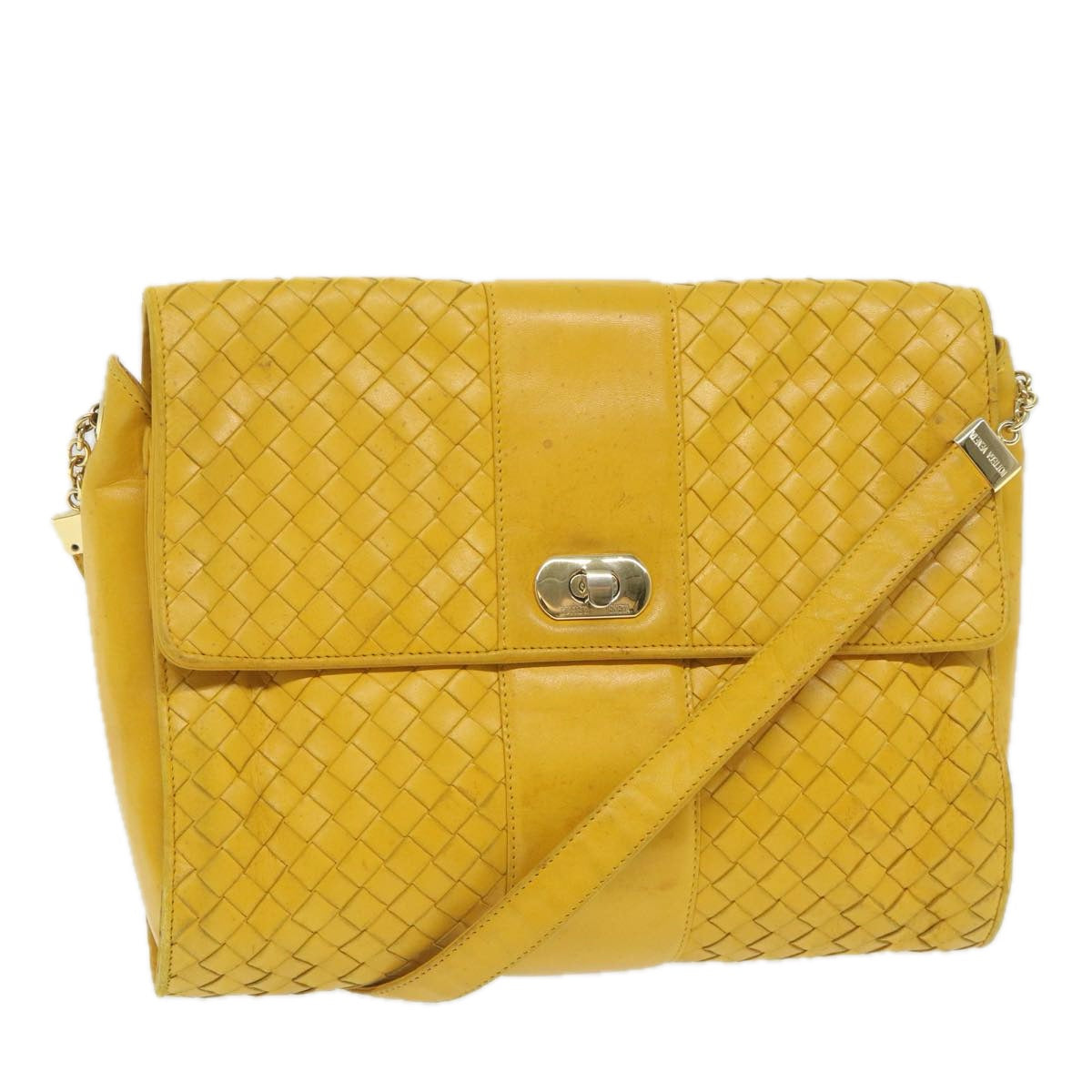 BOTTEGA VENETA INTRECCIATO Shoulder Bag Leather Yellow Auth bs9234