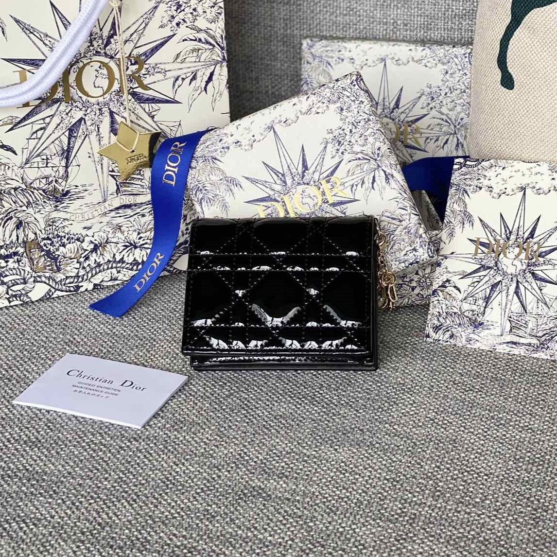 DIOR Caro 11cm Compact Wallet Shiny Black Calfskin