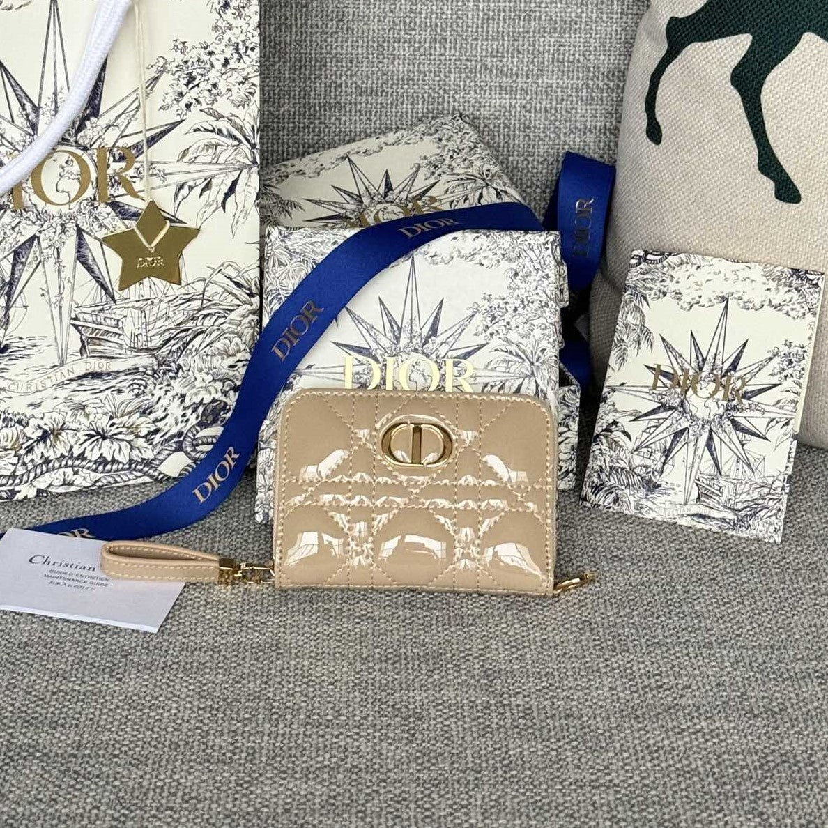 DIOR Logo Caro 11cm Compact Wallet Shiny Beige Calfskin