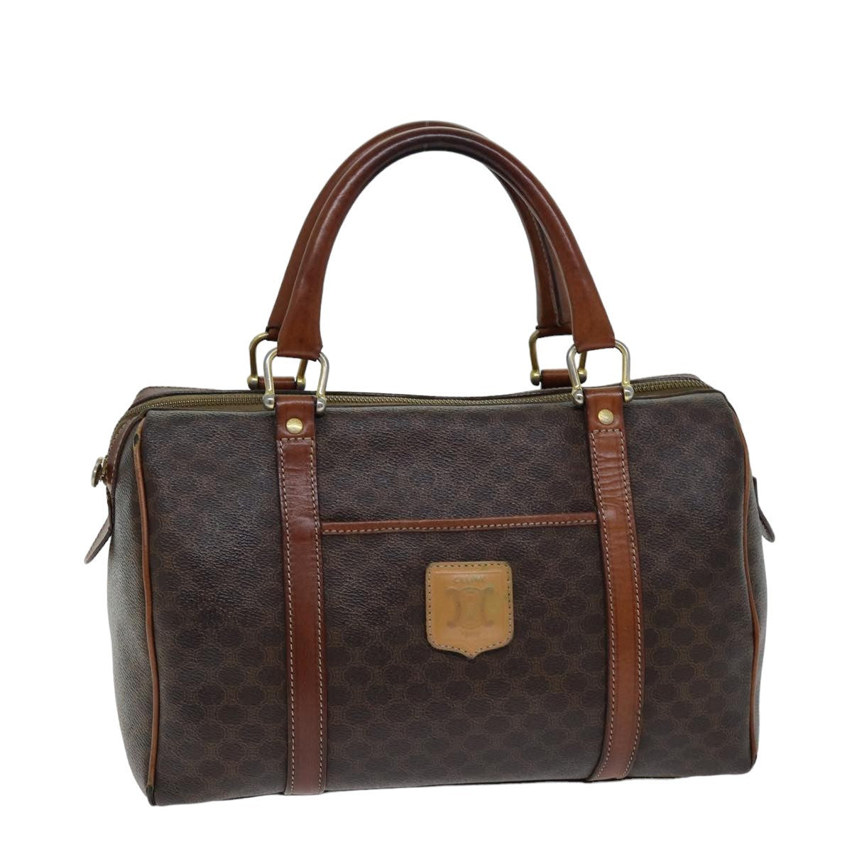 CELINE Macadam Canvas Boston Bag PVC Leather Brown Auth 76580