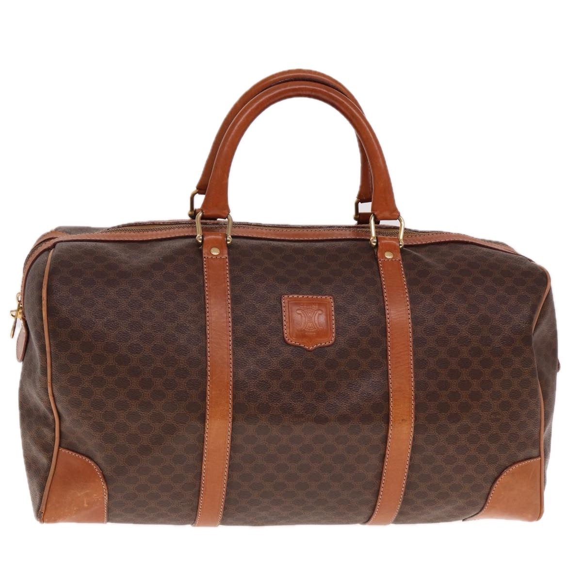 CELINE Macadam Canvas Boston Bag PVC Leather Brown Auth bs15281