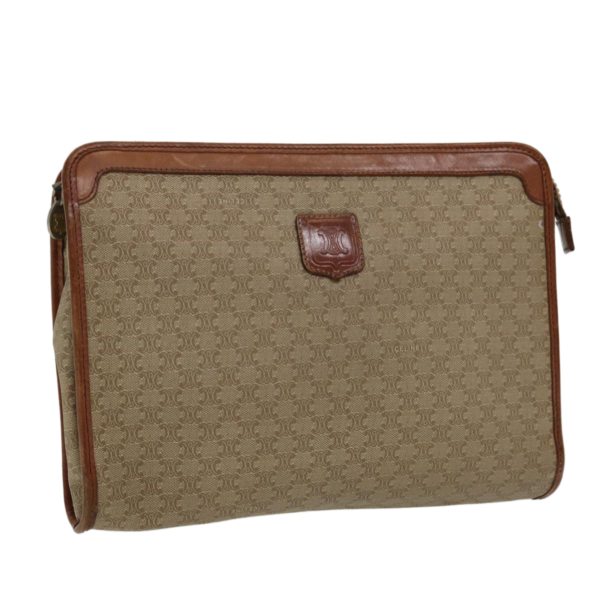 CELINE Macadam Canvas Clutch Bag Beige Gold Auth ar12344