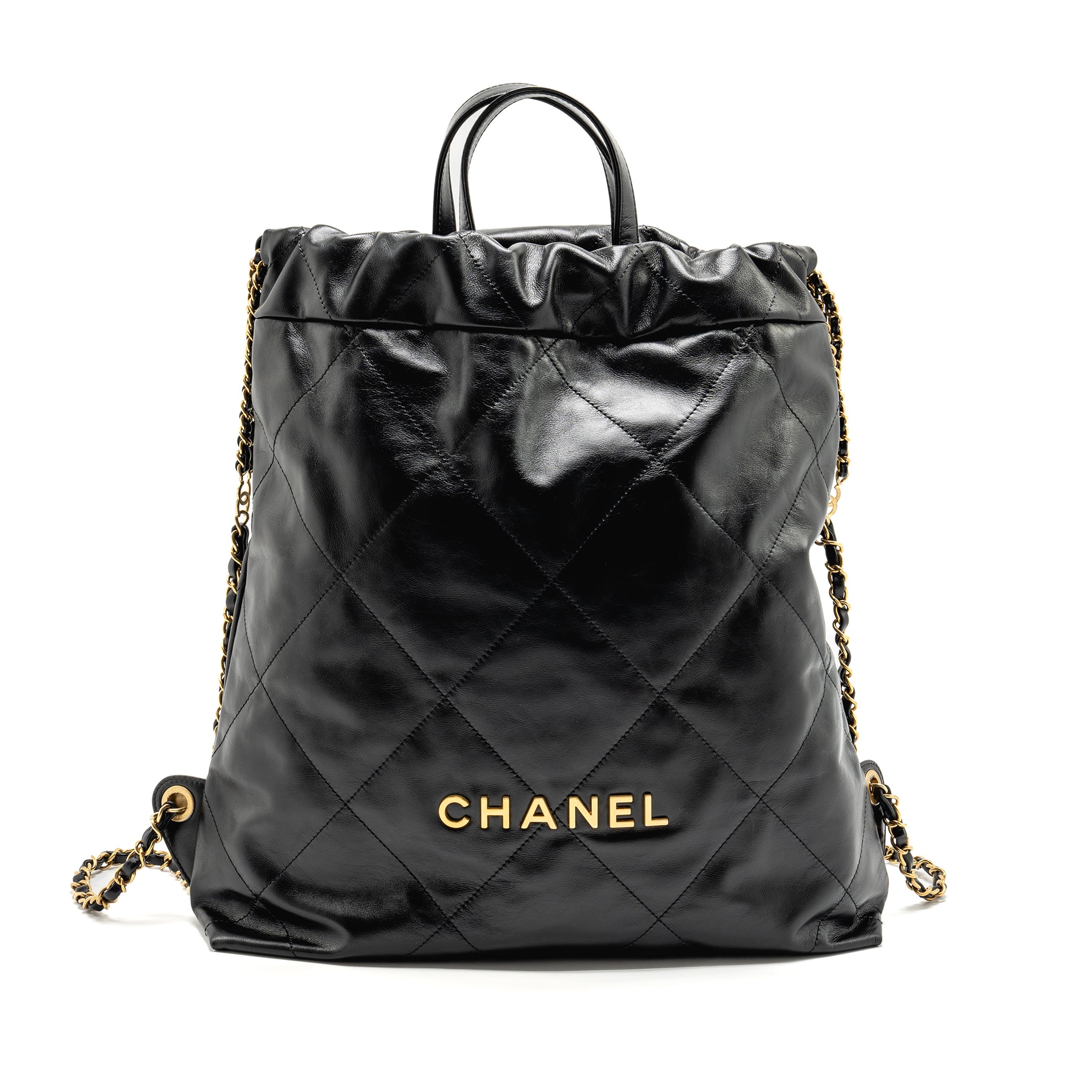 Chanel 22 Backpack Gold Letter Logo Shiny Calfskin Black GHW(microchip)