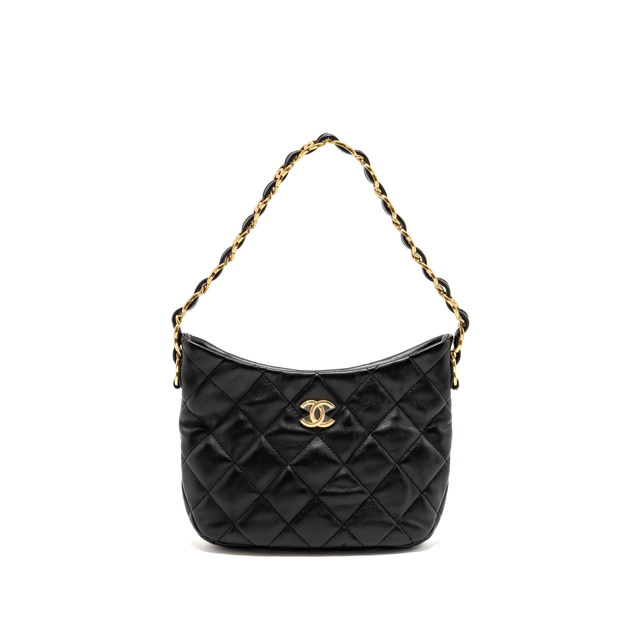 Chanel 22k Hobo Shoulder Bag Lambskin Black GHW