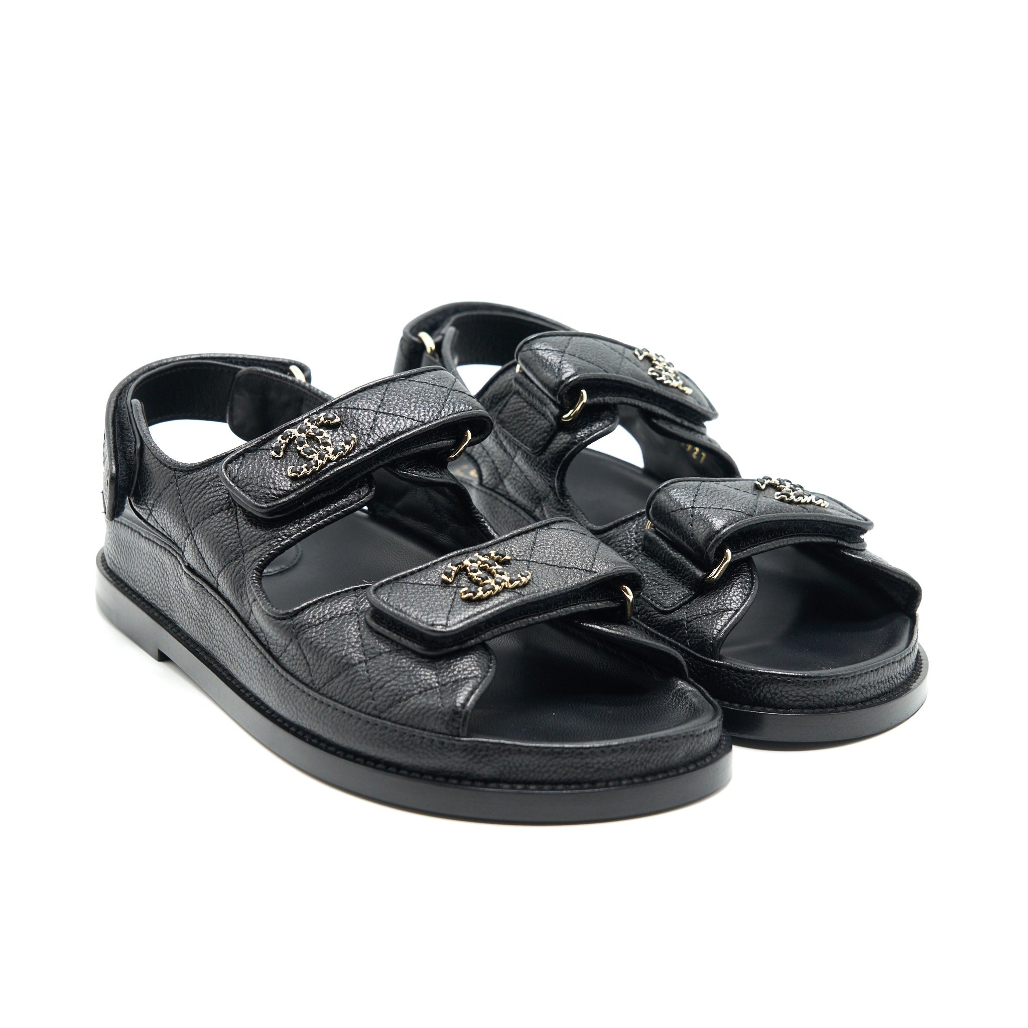 CHANEL DAD SANDALS SIZE36.5 LEATHER SANDAL BLACK