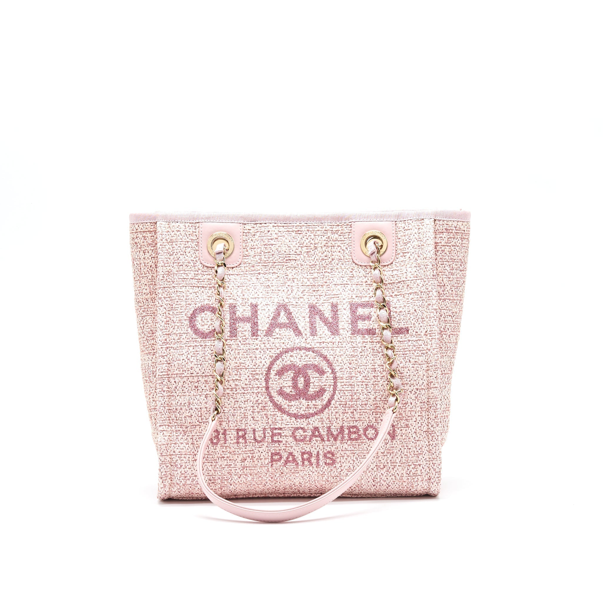 Chanel Deauville PM Tote Bag Canvas Pink SHW