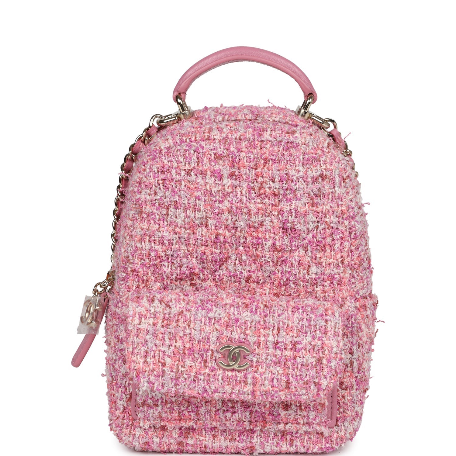 Chanel Mini Phone Holder Backpack with Chain Pink Multicolor Tweed Light Gold Hardware
