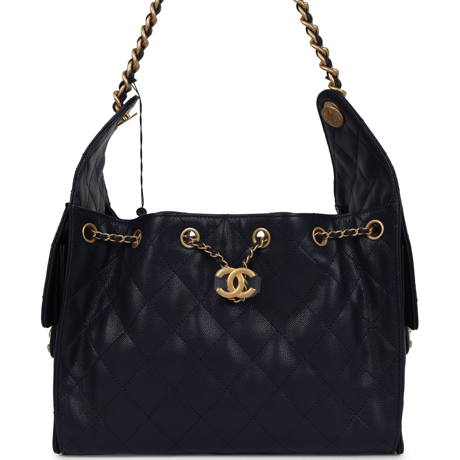 Chanel Small 25 Hobo Bag Dark Navy Caviar Antique Gold Hardware