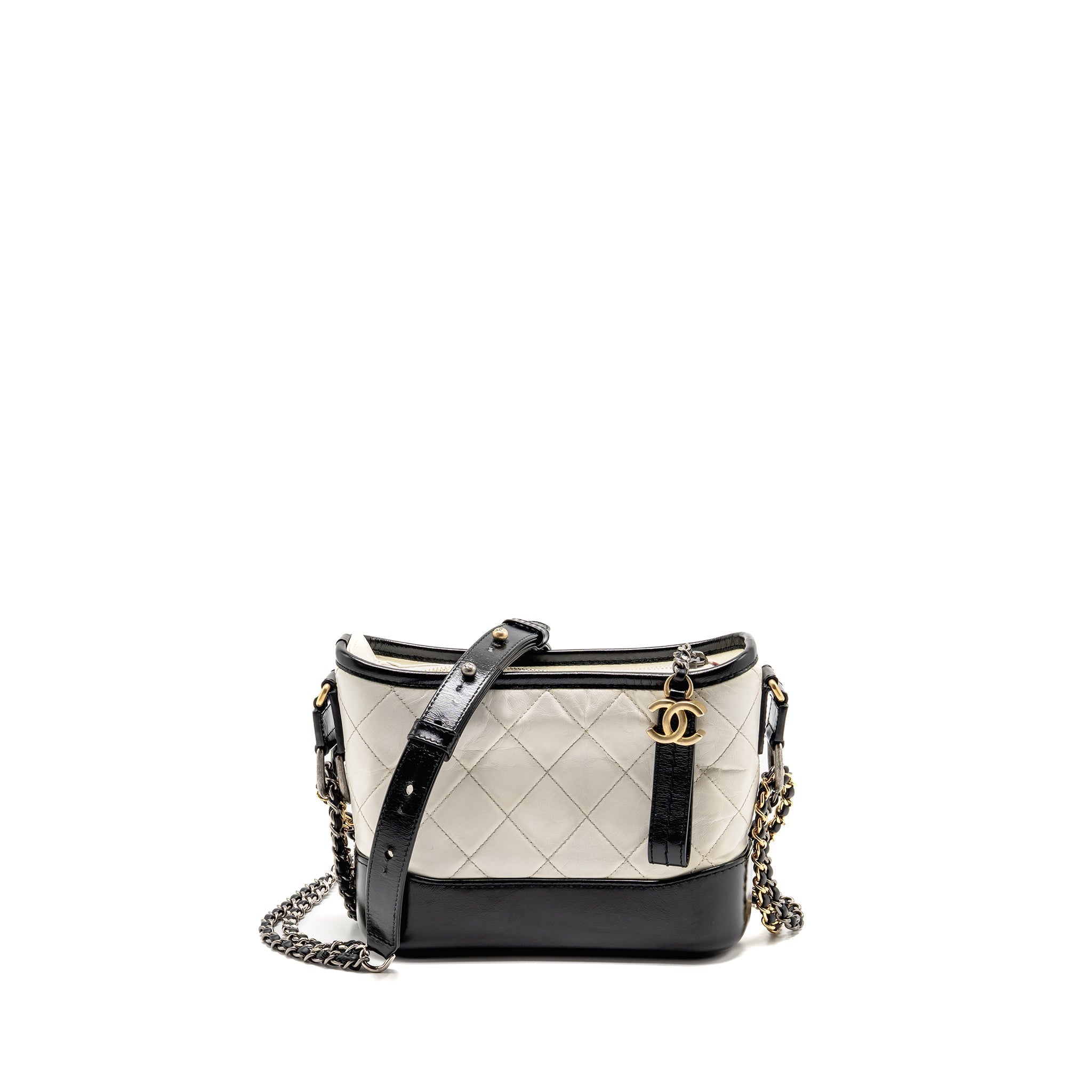 CHANEL Small Gabrielle Hobo Bag Aged Calfskin White/Black Multicolour Hardware