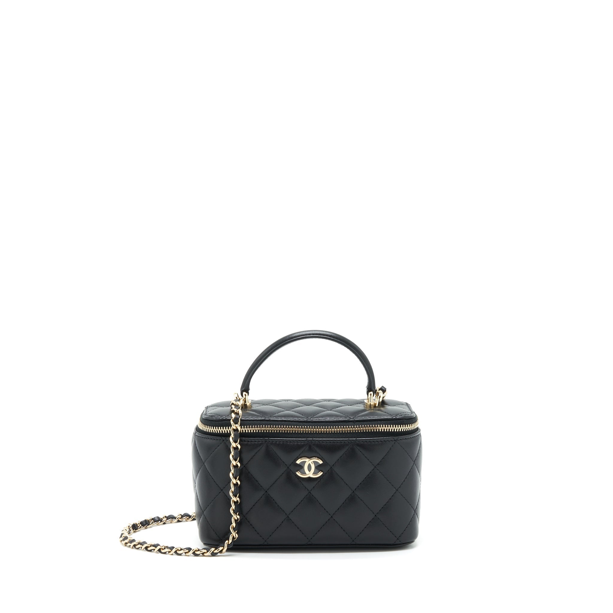 Chanel Top Handle Long Vanity With Chain Lambskin Black LGHW