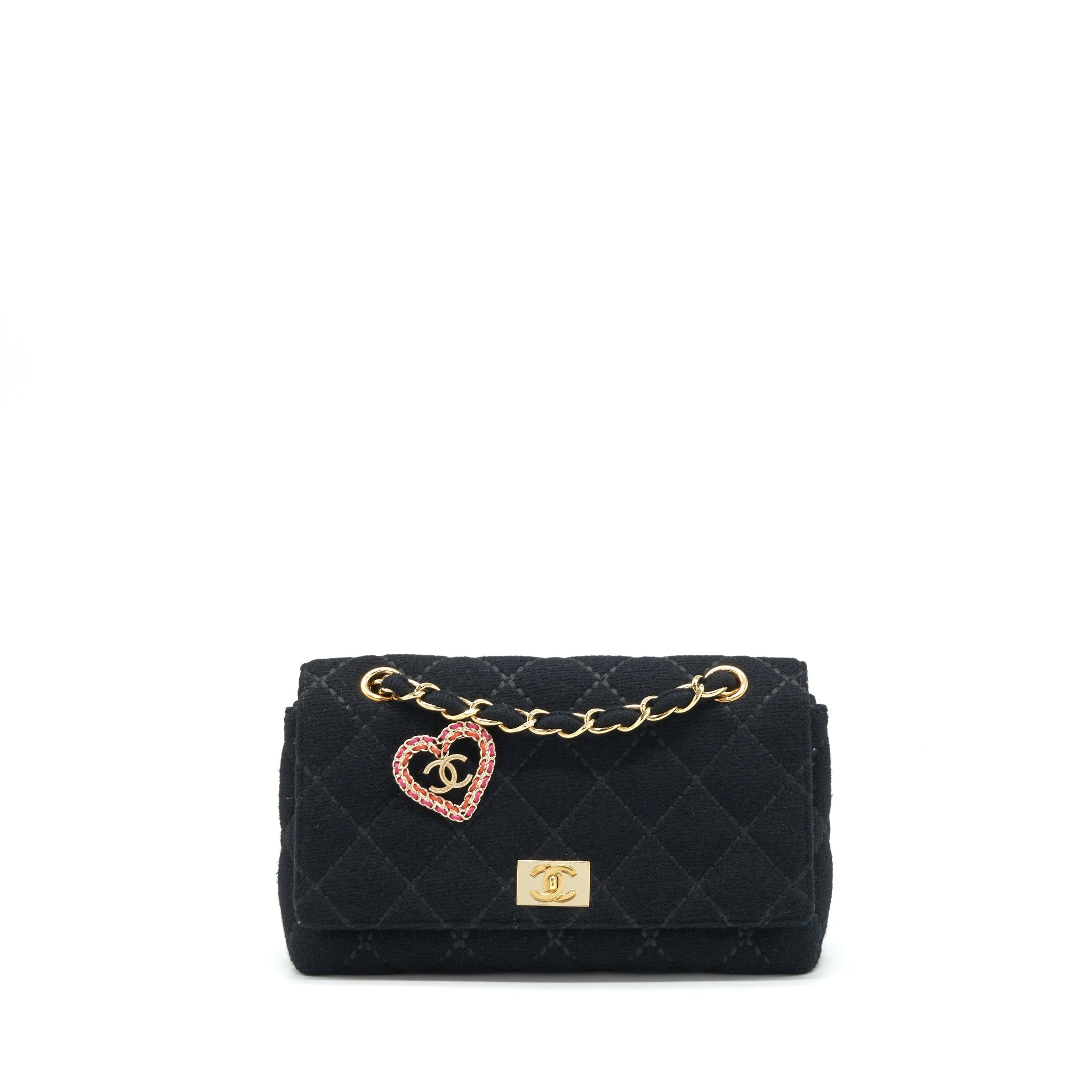 Chanel Vintage Shoulder Bag fabric Black GHW With An Extra Bag Charm