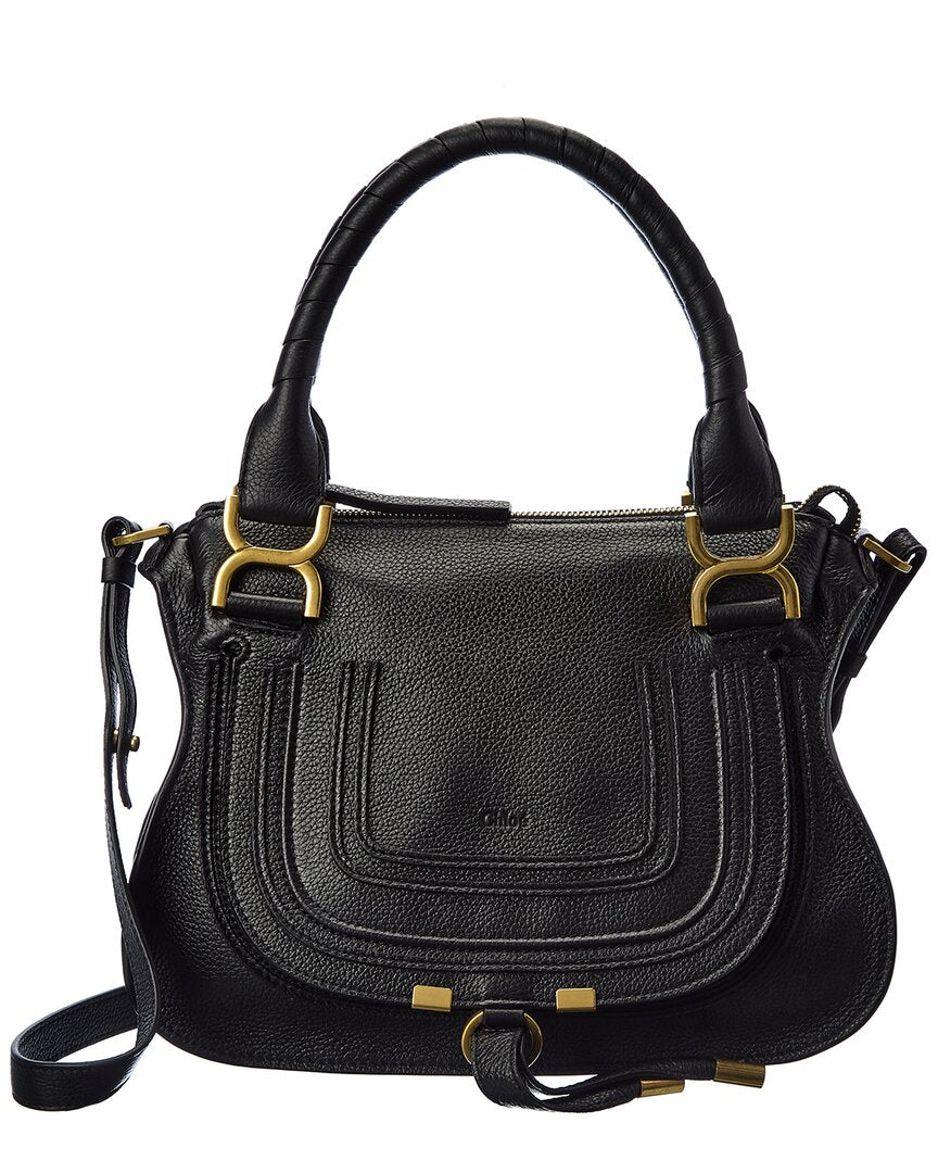 Introducing the Chloe Marcie Small Leather Satchel, a timeless accessory that perfectly embodies the essence of the Chloe brand. Romantic, cool, and glamorous, this satchel is a must-have addition to any woman's handbag collection.Crafted with exquisite attention to detail, this satchel is made in Italy, ensuring superior craftsmanship and quality. The luxurious black leather is complemented by gold-tone hardware, adding a touch of elegance and sophistication.Designed for both style and functionality, the Marcie Small Leather Satchel features an embossed logo accent and an exterior pocket, providing convenient storage options. The canvas lining adds a finishing touch of finesse.With dimensions of 12 inches wide, 9 inches high, and 3.5 inches deep, this satchel offers ample space for all your essentials. The top handles, with a drop of 5 inches, and the adjustable and removable shoulder strap, with a drop of 21 inches, allow for versatile carrying options to suit your preference.The zippered top ensures the security of your belongings, allowing you to carry your essentials with peace of mind. Please note that all measurements were taken by hand and are approximate, as slight variations may occur.Rest assured, our products are . While we may occasionally source merchandise from authorized sellers instead of directly from the brand, we the of every product sold on our site.Elevate your style with the Chloe Marcie Small Leather Satchel. Embrace the allure of Italian craftsmanship, indulge in the iconic Chloe brand, and experience the perfect blend of beauty and functionality. Shop now and make a timeless statement.