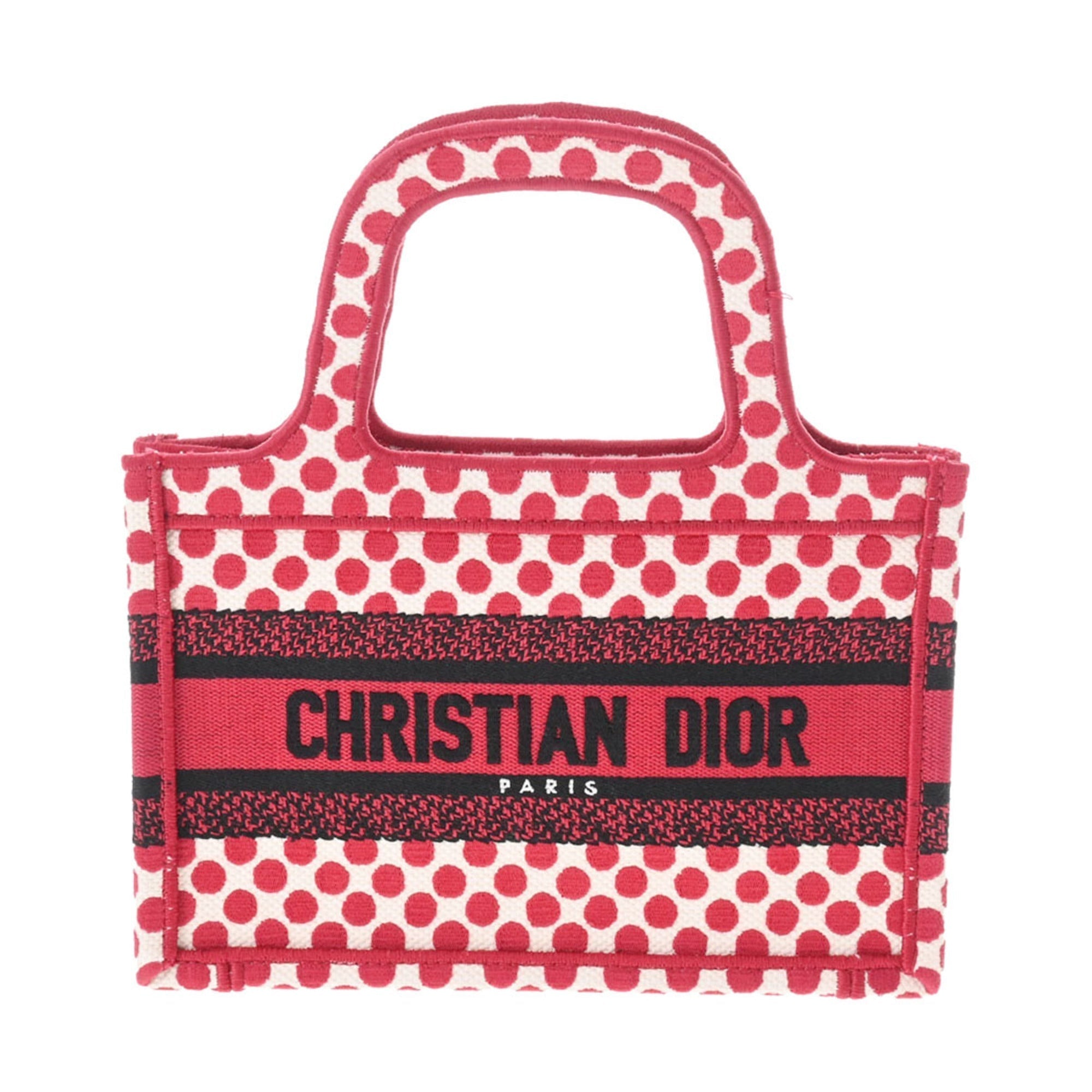 CHRISTIAN DIOR Book Tote Dot Pattern Red White Women's Canvas Bag