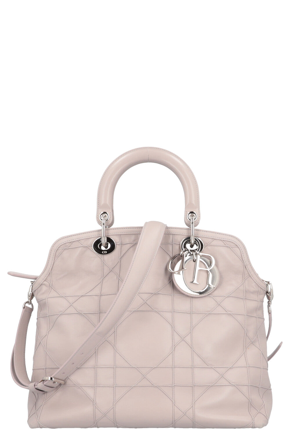 We Love: Eine Christian Dior Ikone - Die Granville Satchel Bag zeichnet sich durch ihre typische Absteppung im Leder sowie der Dior Hardware Elementen aus. Zeitloser Mauve Farbton in zartestem Leder
