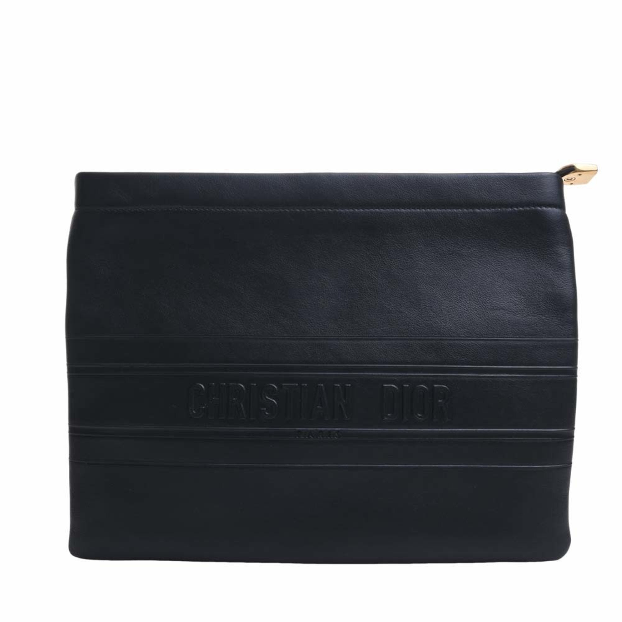 Christian Dior Leather Striped Pouch Clutch Bag Second Black Ladies