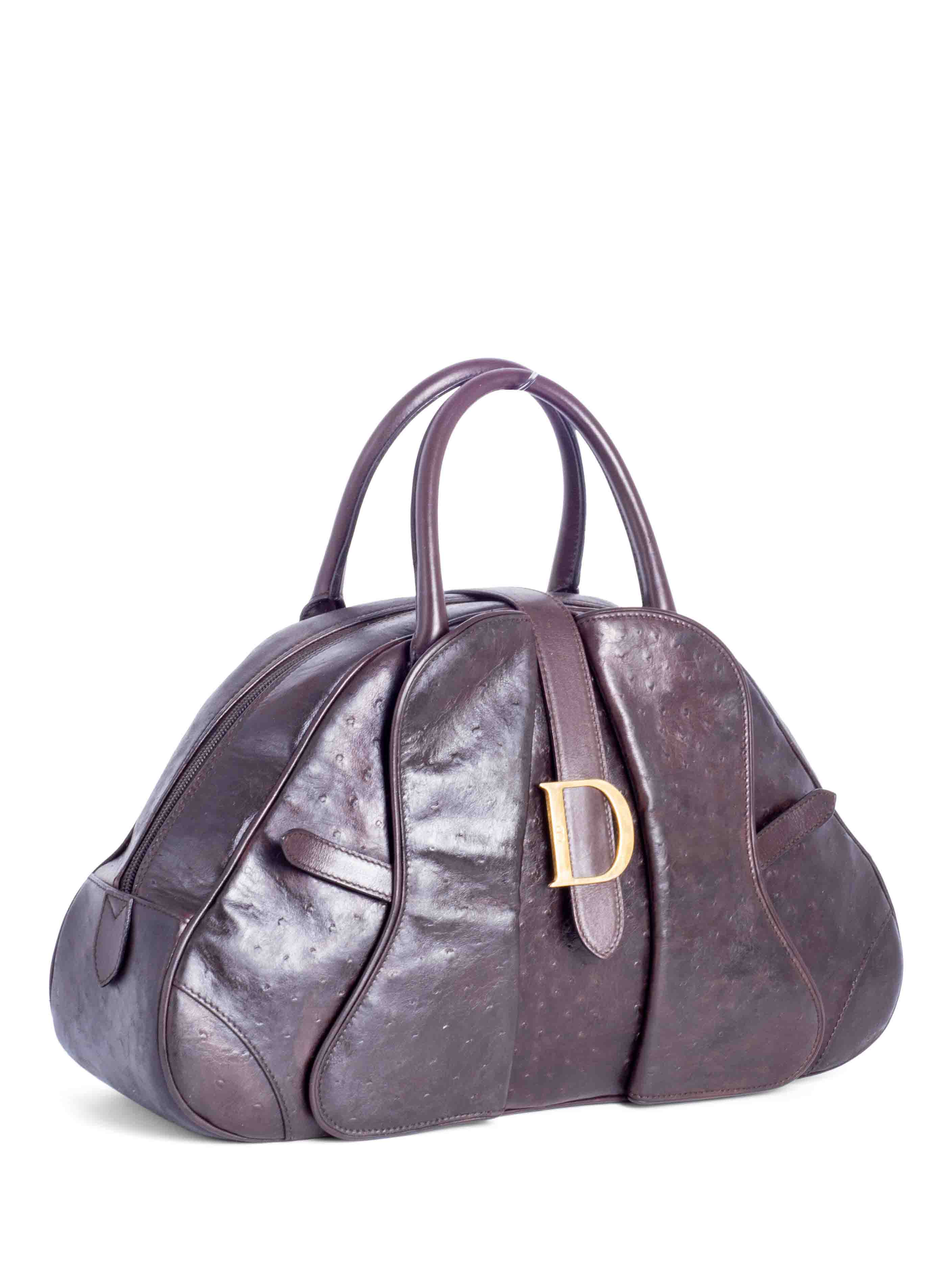 Christian Dior Ostrich Double Saddle Top Handle Bag Brown