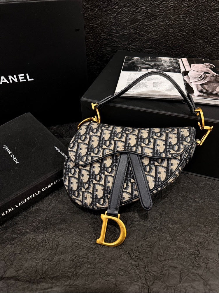 Elevate your style with this exquisite Dior Saddle Bag, a perfect blend of iconic design and modern elegance. Crafted in luxurious Jacquard, this mini handle bag showcases the timeless Dior Oblique pattern. With its compact dimensions and signature 'D' charm, it's a statement piece that complements any outfit. Ideal for those who appreciate both fashion and function, this bag is a must-have for any luxury collection.