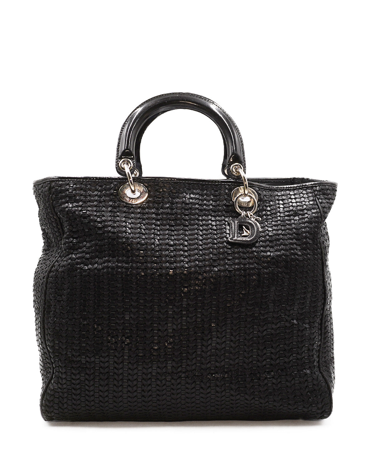 Classic Dior Large Soft shopping tote in black woven leather. A great everyday bag, this tote features the iconic Dior letters charm on the front, chain and leather shoulder handles, gold tone hardware and a roomy interior fully lined in black with a zipper and mobile phone pockets.