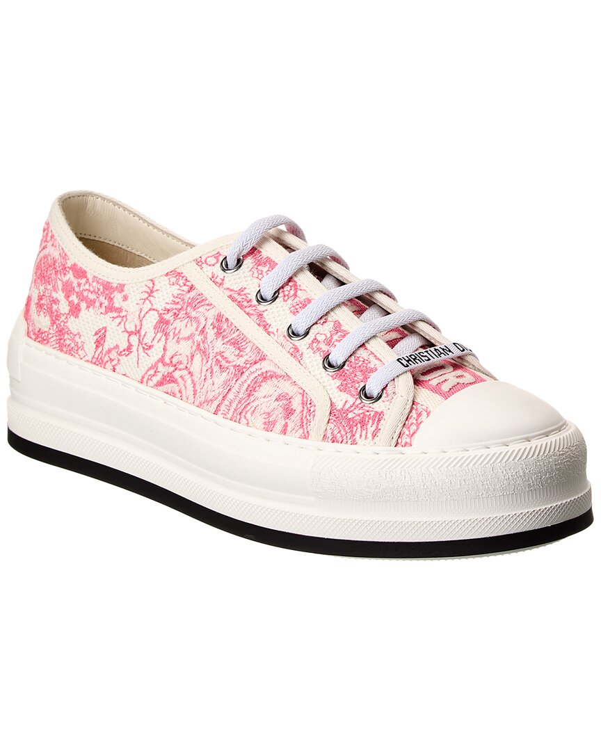 Elevate your casual style with the Dior Walk'N'Dior Platform Sneaker. Made in Italy, these stylish sneakers feature a pink and white embroidered canvas design with silver-tone hardware and logo printed laces. The lace-up closure and lightly padded insole provide comfort, while the rubber sole with traction ensures stability. The 2-inch platform adds a touch of height to your look. Please note that size selections are European, so be sure to reference the size chart for US conversions. These sneakers are 100% genuine, sourced from trusted independent suppliers to . Add a touch of elegant and timeless French luxury to your wardrobe with these Dior sneakers.