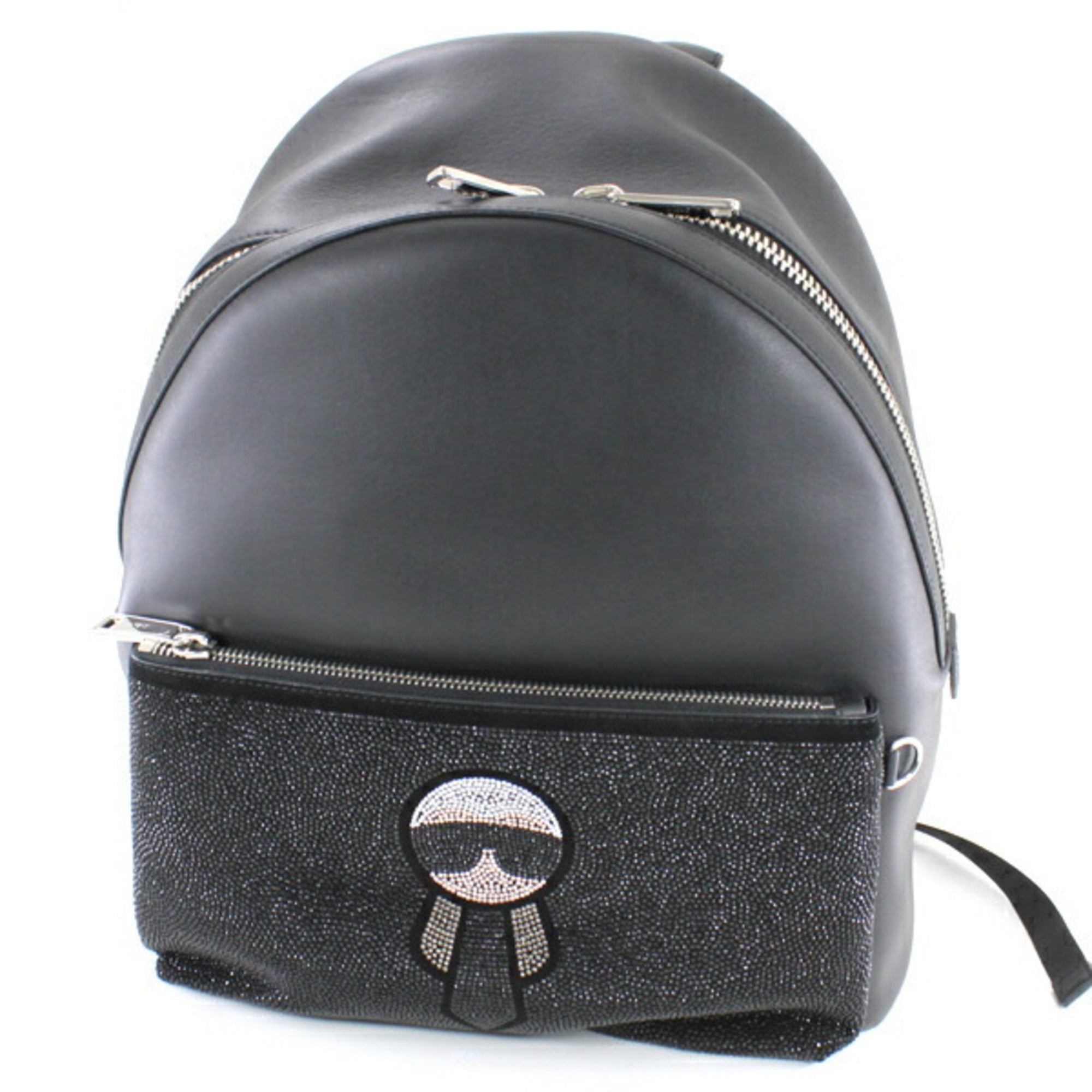 FENDI Backpack Rucksack Carlito Karl Lager Felt Leather X Crystal Men's Women's Black 7VZ012 7OO F0X93 Fashion