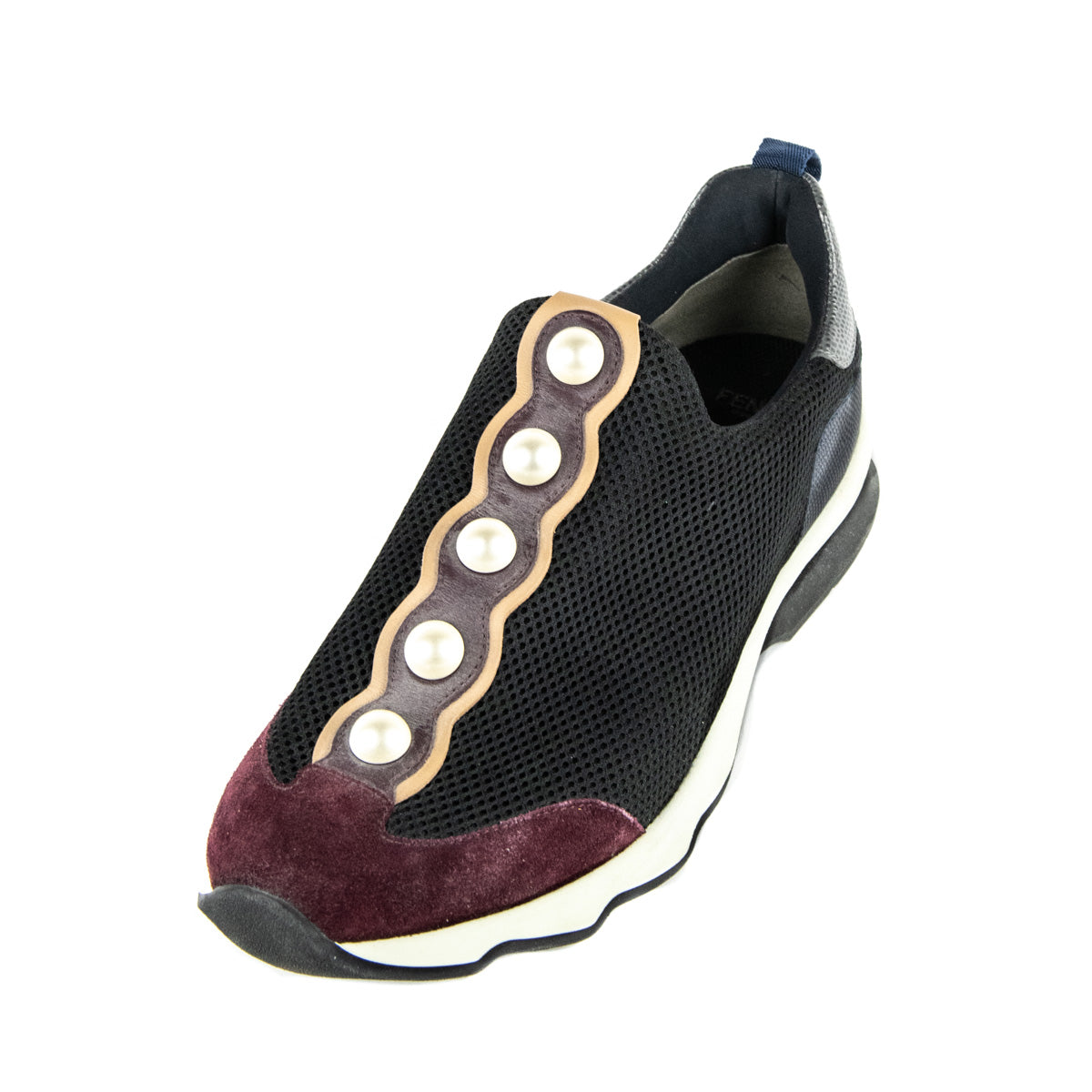 Fendi Black & Burgundy Mesh Pearl Technical Slip On Sneakers Size US 11 | EU 41