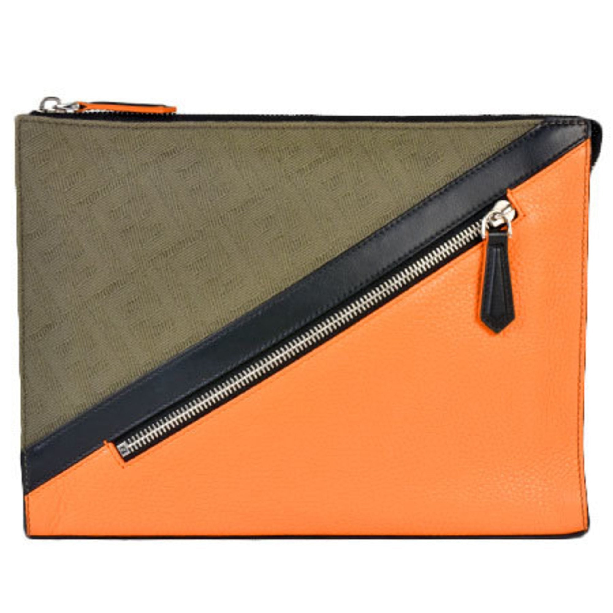 FENDI Clutch Bag Orange x Brown Zucca Fabric Leather 7V33 AB01