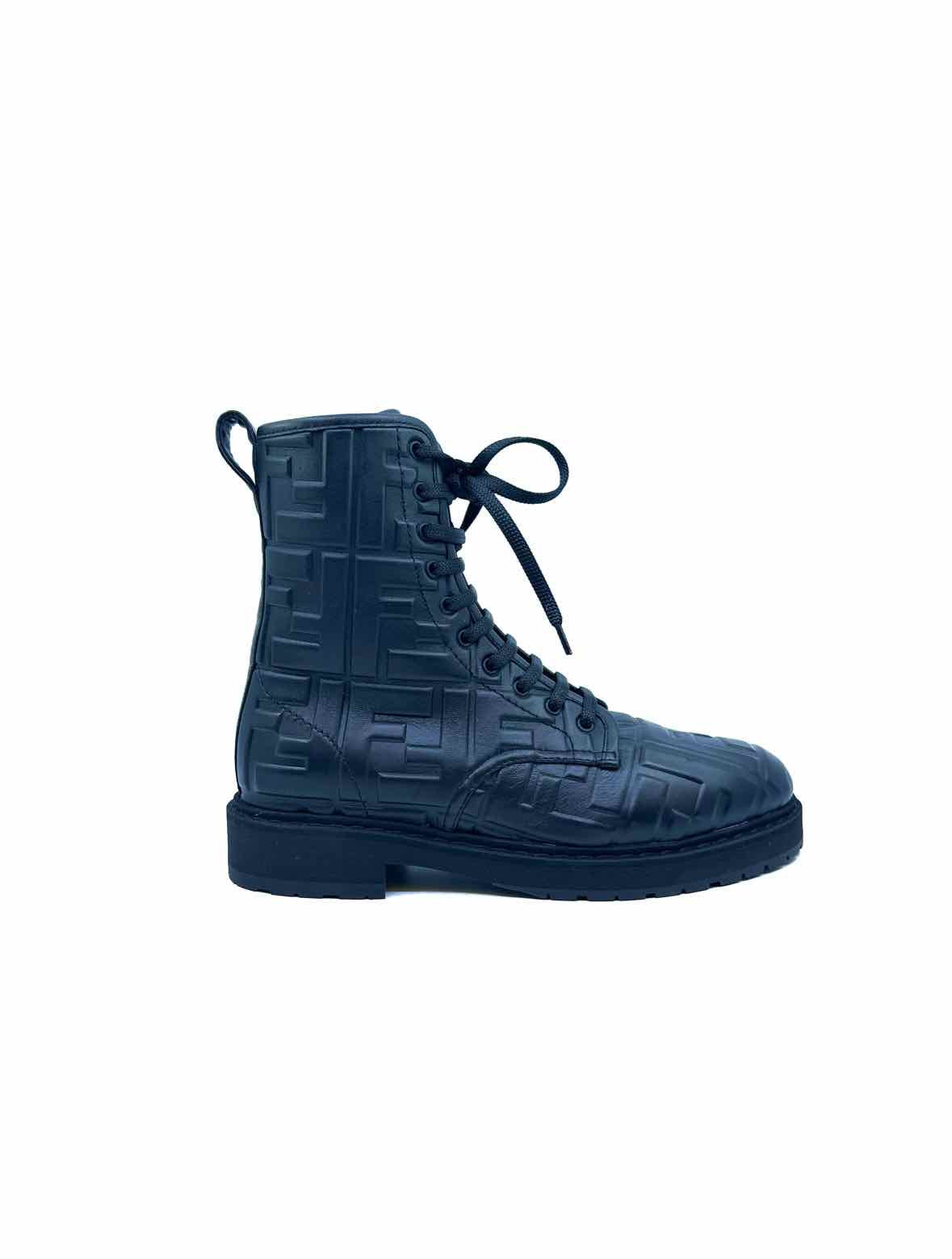 FENDI Combat Size 6 Black Leather Monogram Ankle Boot