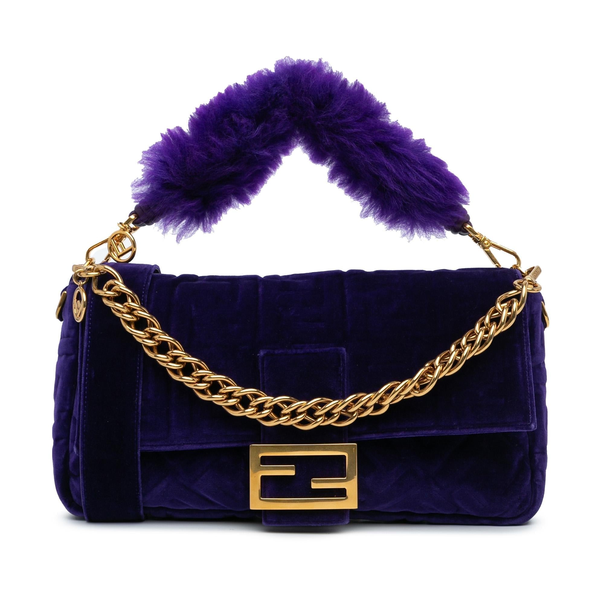 Fendi Large Zucca Embossed Velvet Baguette Satchel
