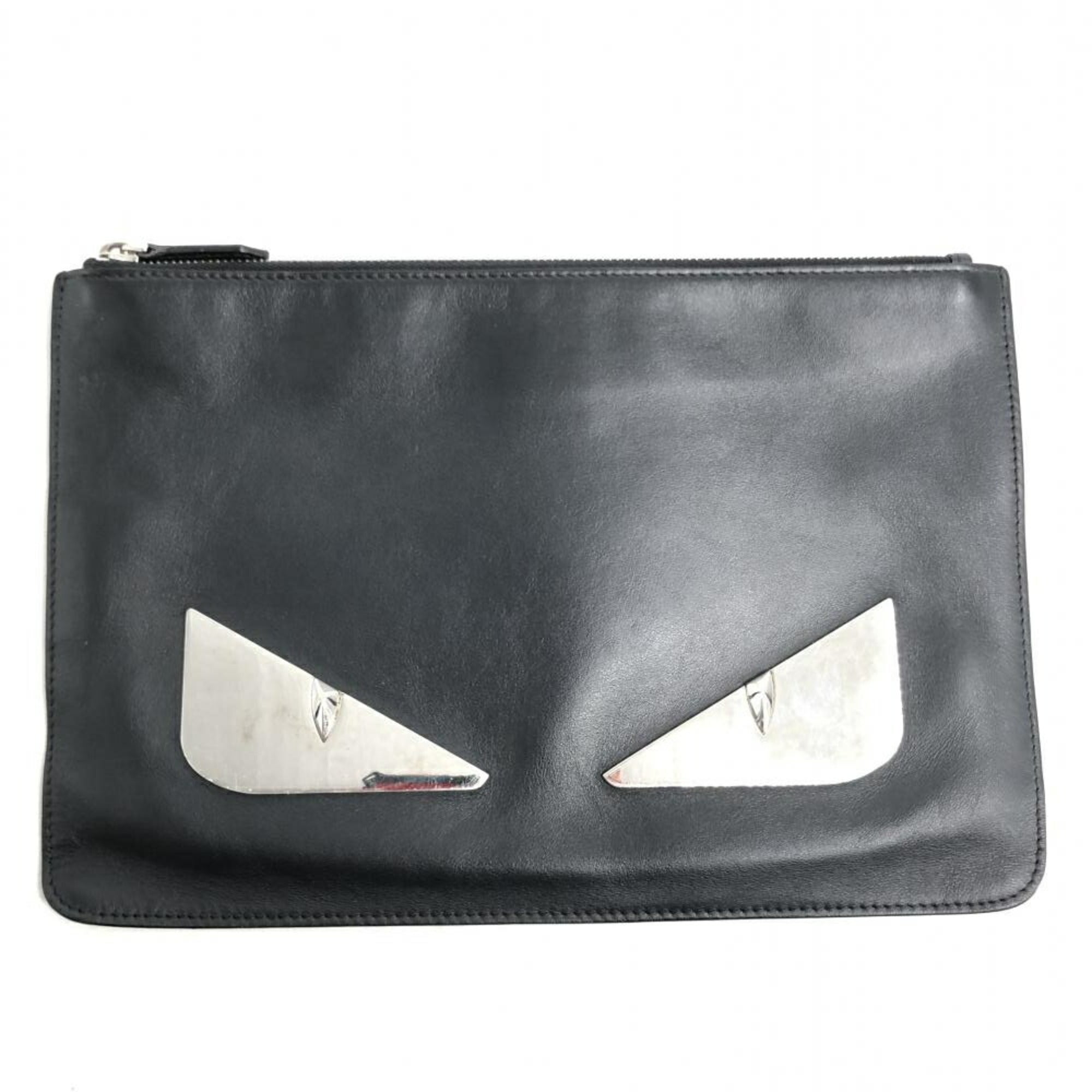 FENDI Leather Monster Clutch Bag 7N0078-SQP Black