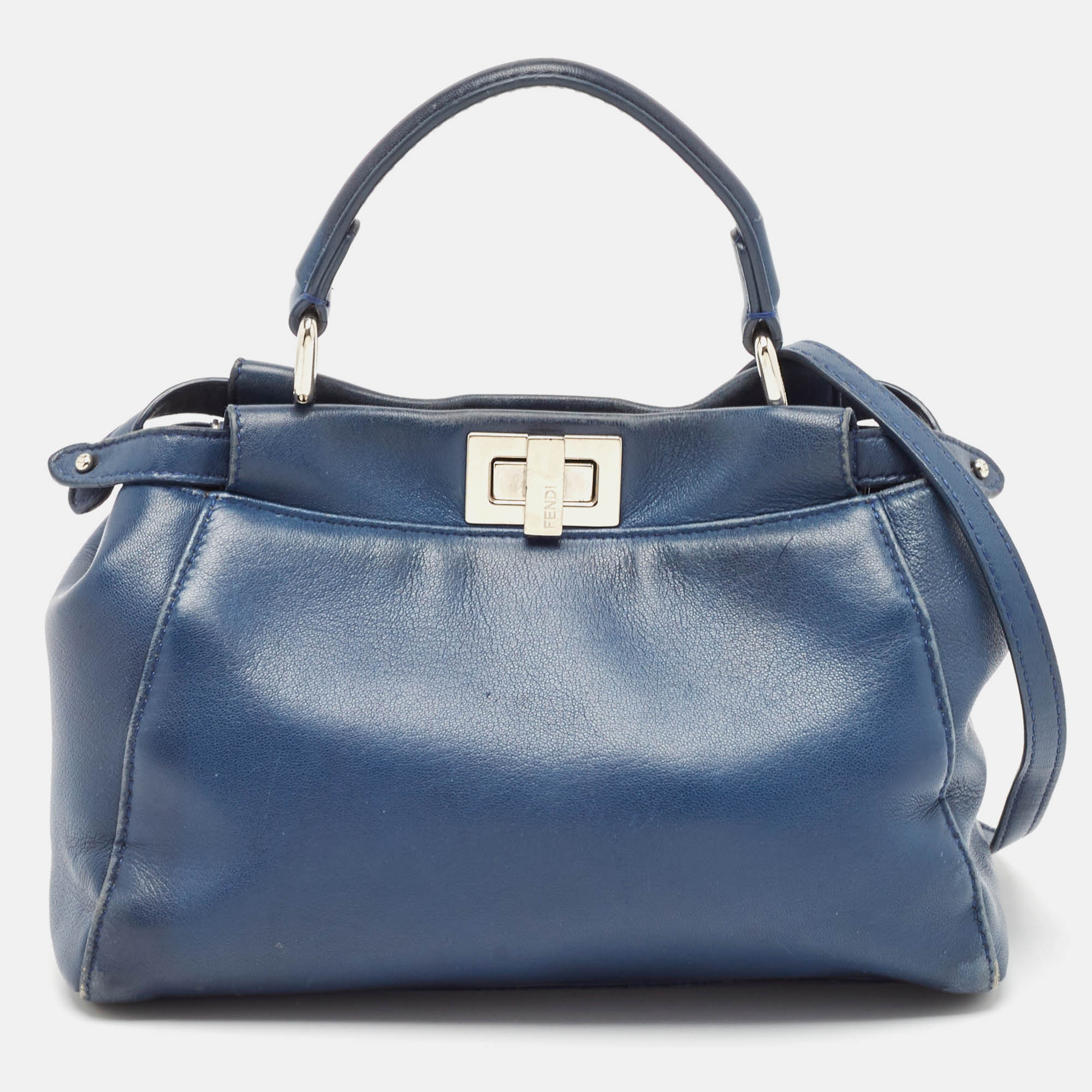 Fendi Navy Blue Leather Mini Peekaboo Top Handle Bag