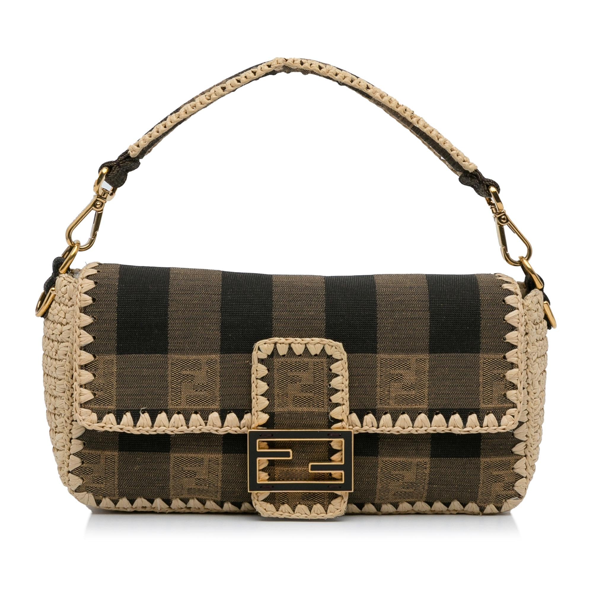 Fendi Pequin Canvas and Raffia Baguette (SHG-LMio6U)