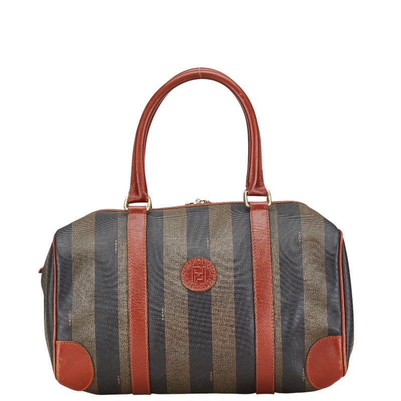 Fendi Pequin Mini Boston Handbag Brown Black PVC Leather