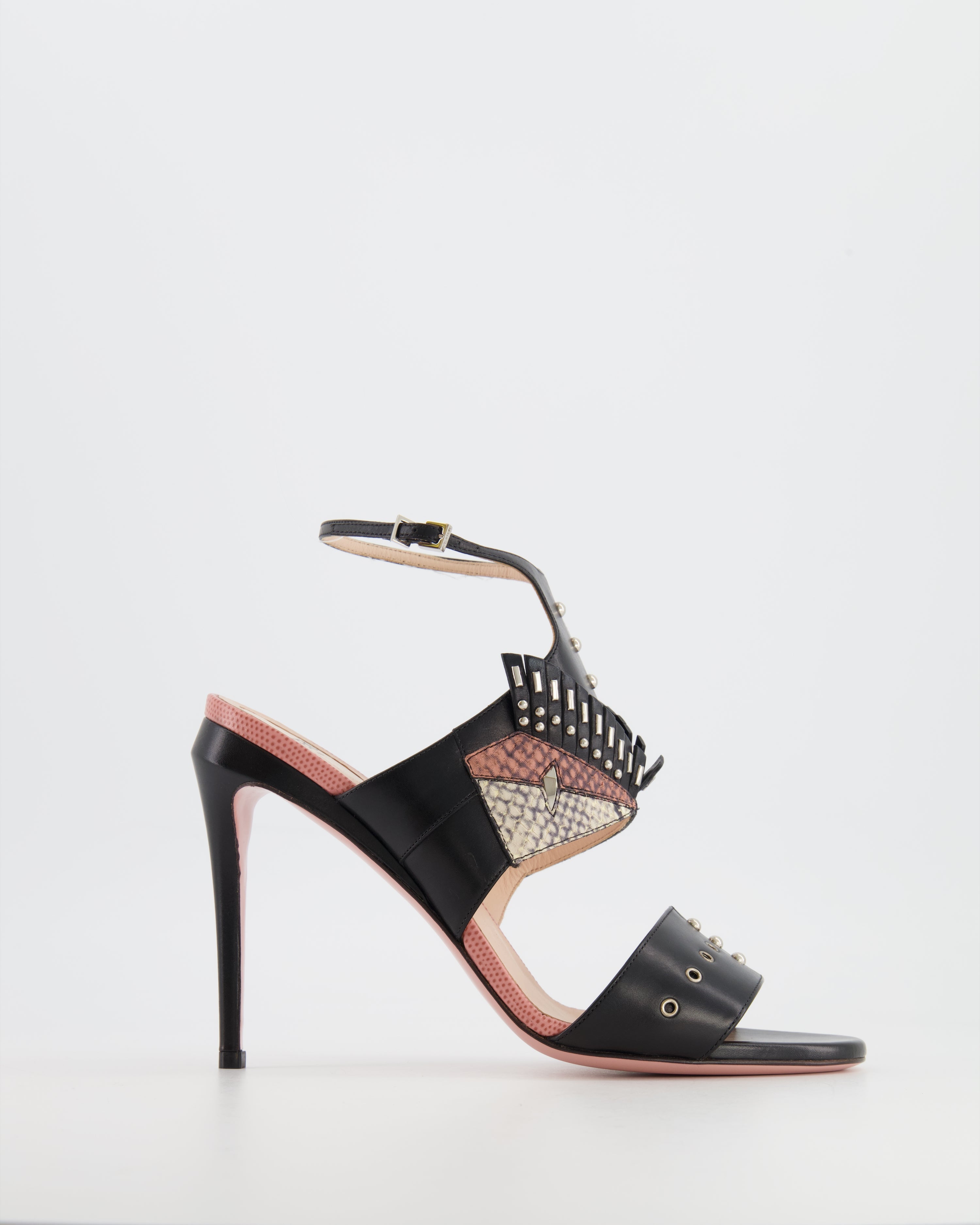 Fendi Rocker Bug Black Studded Sandal Heels Size EU 40