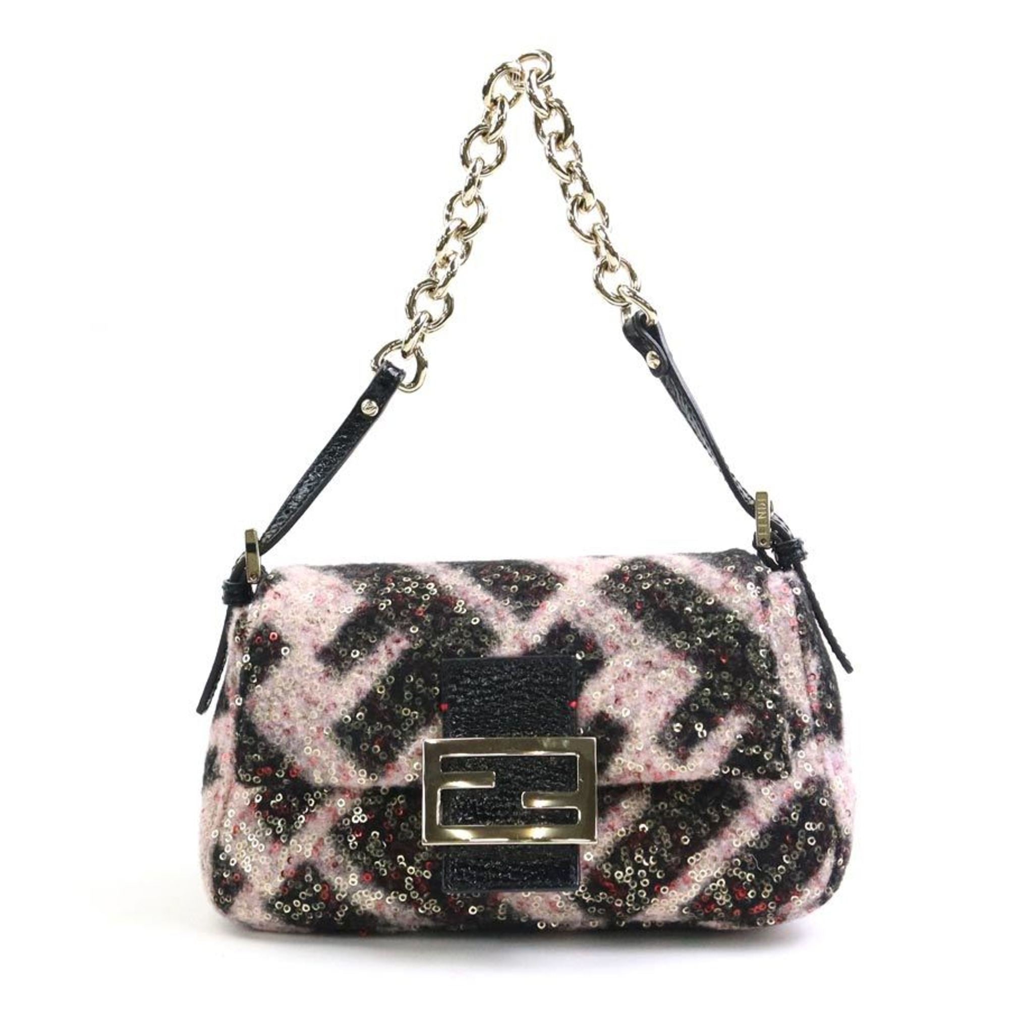 FENDI Shoulder Bag Mini Mamma Bucket Wool/Sequins/Patent Leather Black/Pink/Gold Women's e55935f