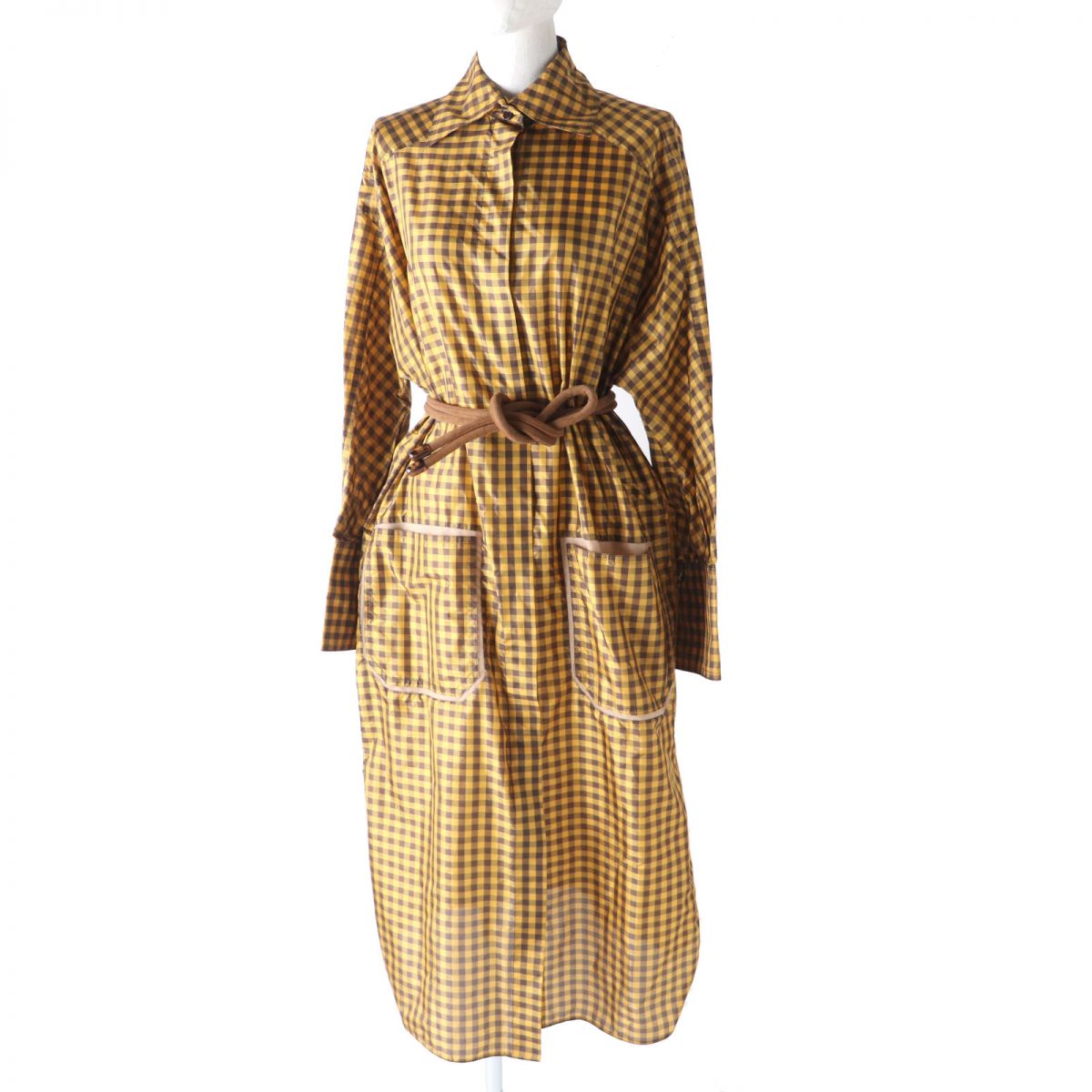 Item name : Fendi Silk Gingham Check Long Shirt Dress