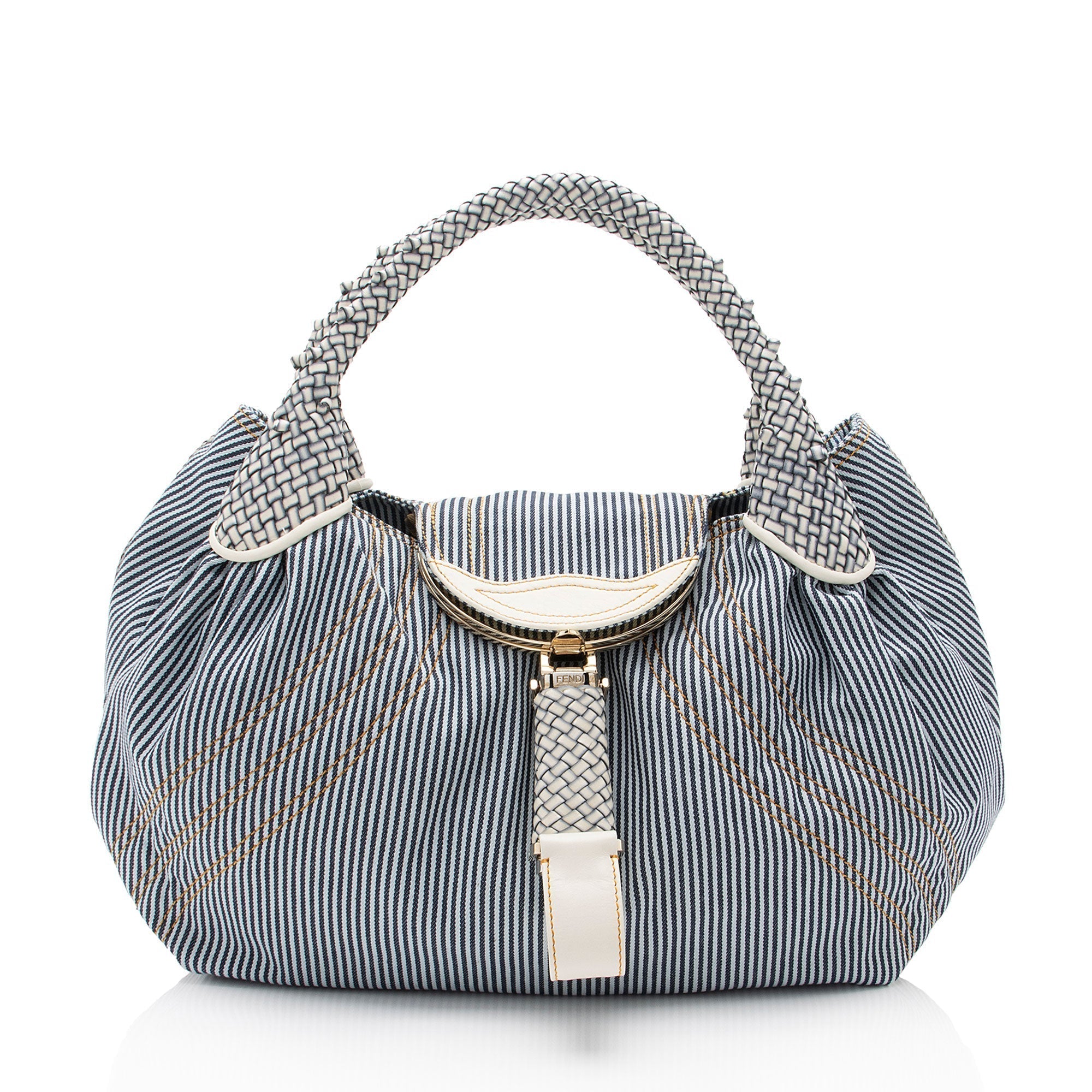 Fendi Striped Denim Spy Satchel (SHF-i8ZclG)