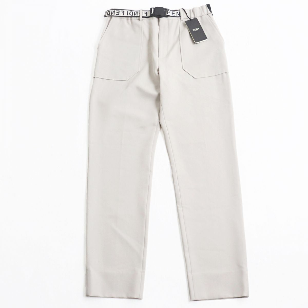Fendi Wool Twill Pants FF Logo Belt Off-White