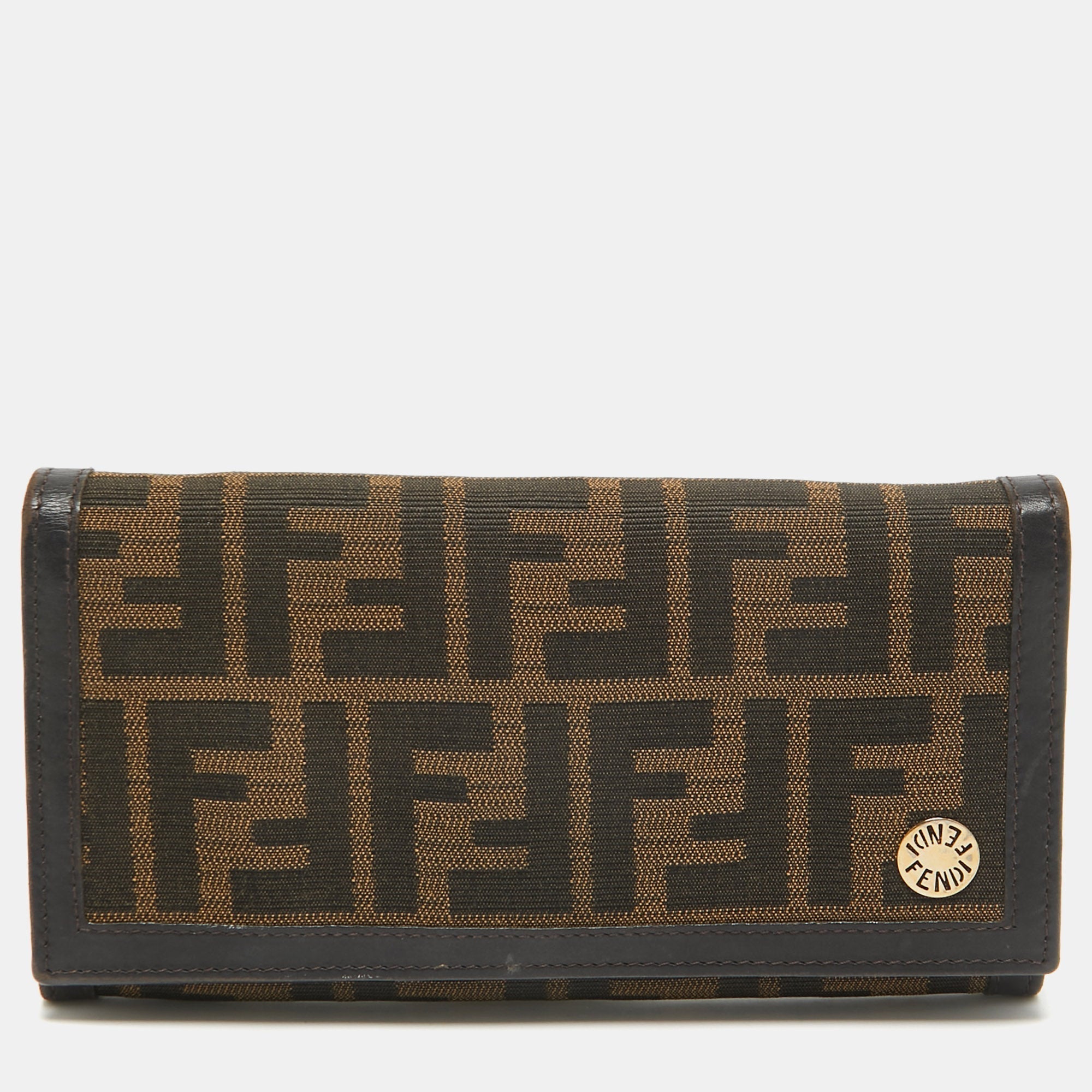 Fendi Zucca Canvas And Leather Flap Continental Wallet