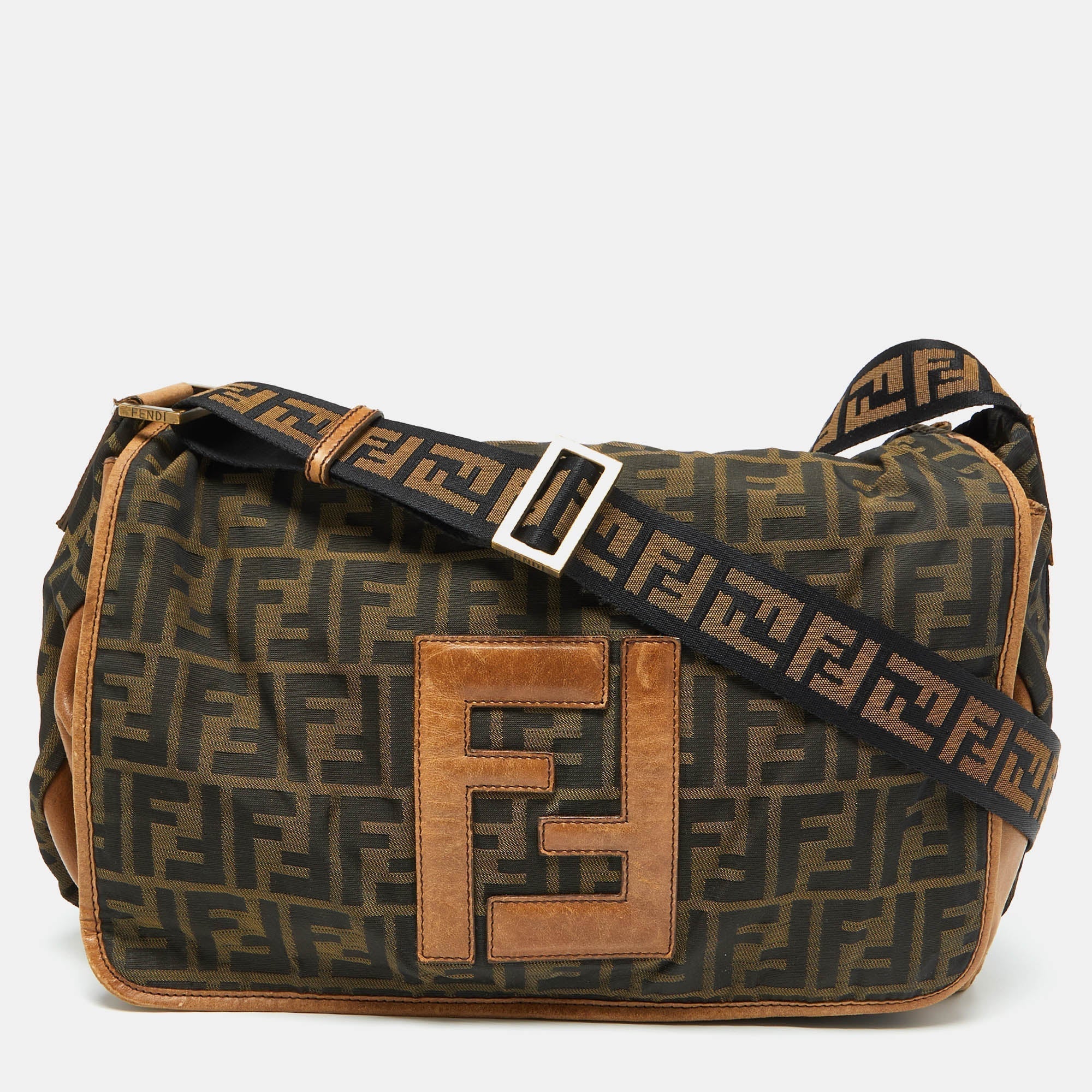 Fendi Zucca Canvas And Leather Flap Messenger Bag