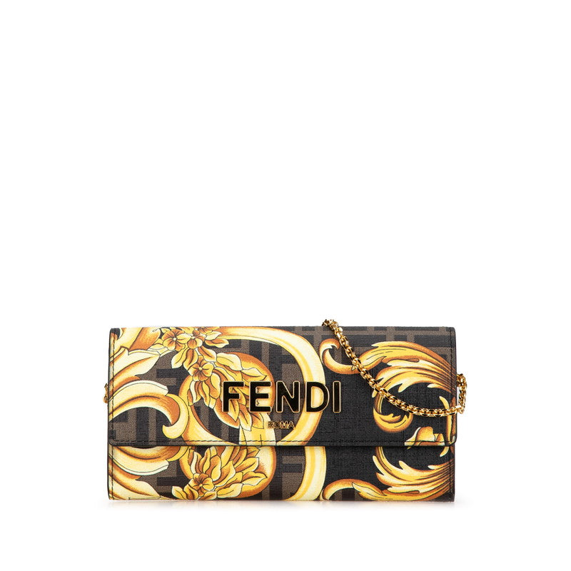 Fendi Zucca Flower Chain Shoulder Wallet Bag