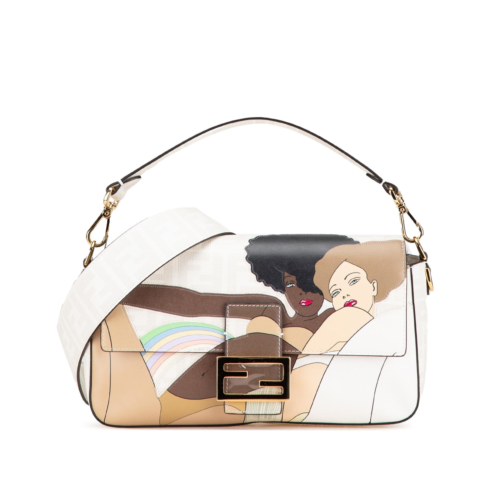 Fendi Zucca Graphic Print Coated Canvas Bikini Girls Baguette Satchel