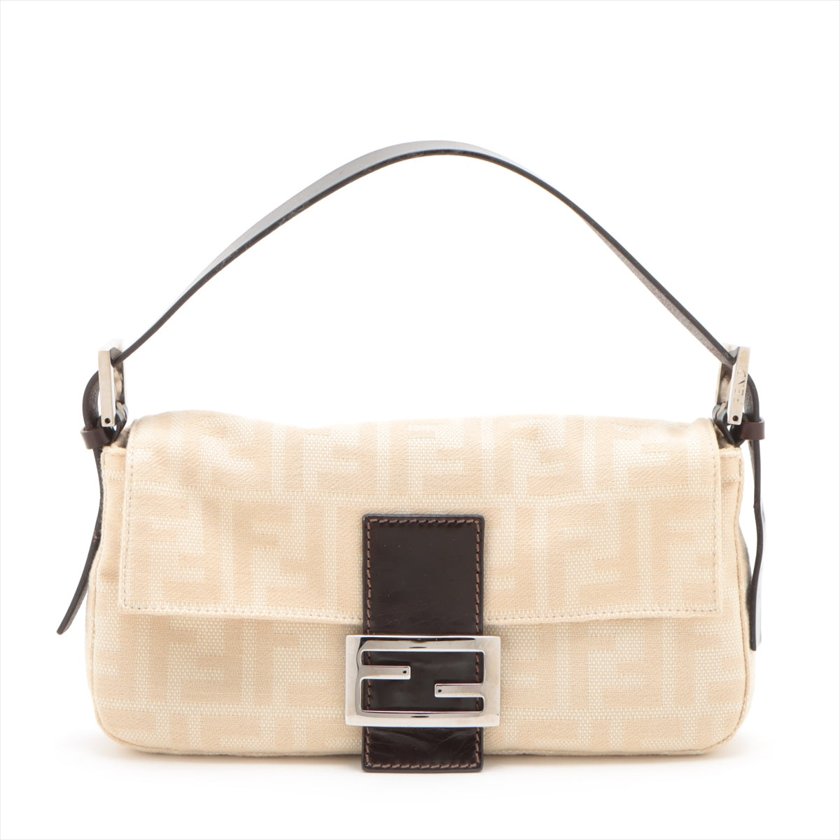 Fendi Zucca Mamma Bucket Canvas Leather One-Shoulder Bag Beige × Brown Fence