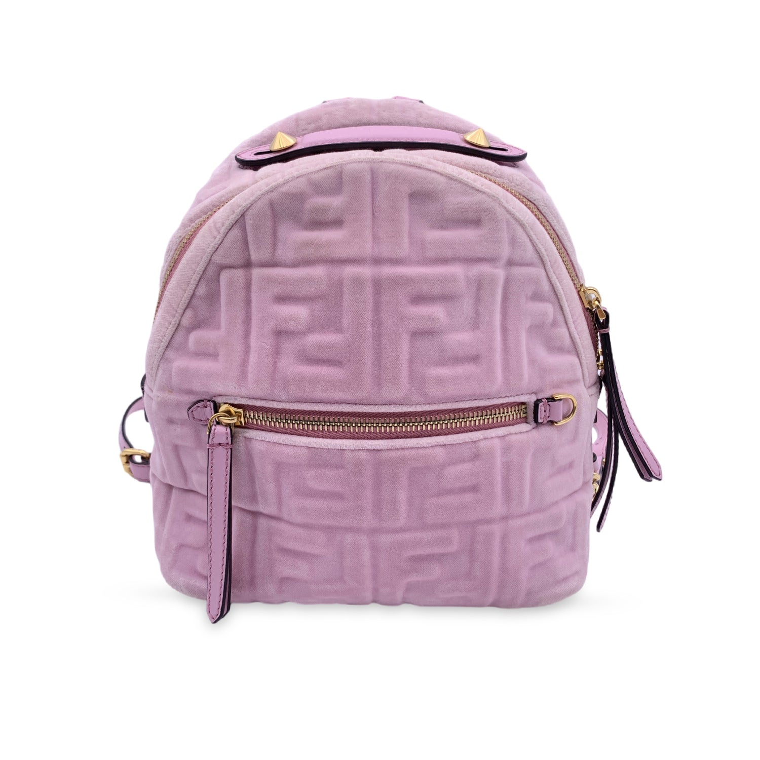 Gorgeous Fendi Mini Backpack Carfted In Pink Velvet With Embossed Ff Monogram Pattern. Leather Handles And Shoulder Straps. Gold Metal Hardware. Upper Zipper Closure. Front Zip Pocket. Fabric Lining With 1 Side Zip Pocket Inside. 'Fendi - Made In Italy' Tag Inside. Serial Number Inside