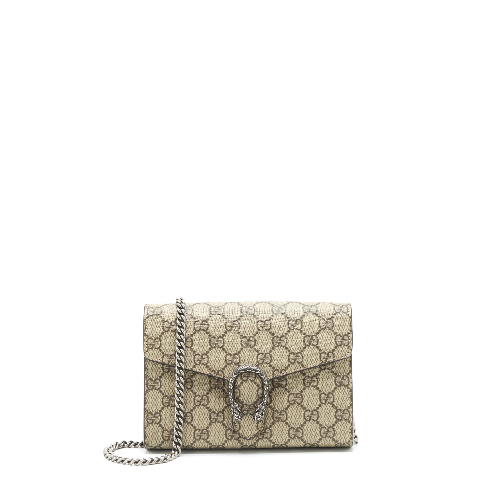 Gucci Dionysus GG Supreme Chain Wallet Beige SHW